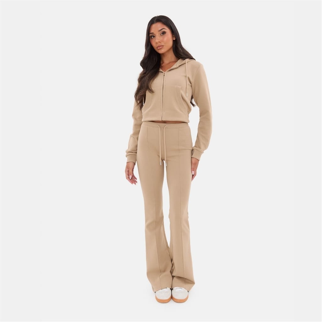 Upgrade your casual wardrobe with these seam detail flared joggers, where comfort meets elevated style. Made from soft, stretchy fabric, they feature a high-rise fit and a flattering flared leg that adds a modern twist to the classic jogger silhouette. The standout seam detailing elongates the legs and adds structure, giving these joggers a more polished, tailored look.