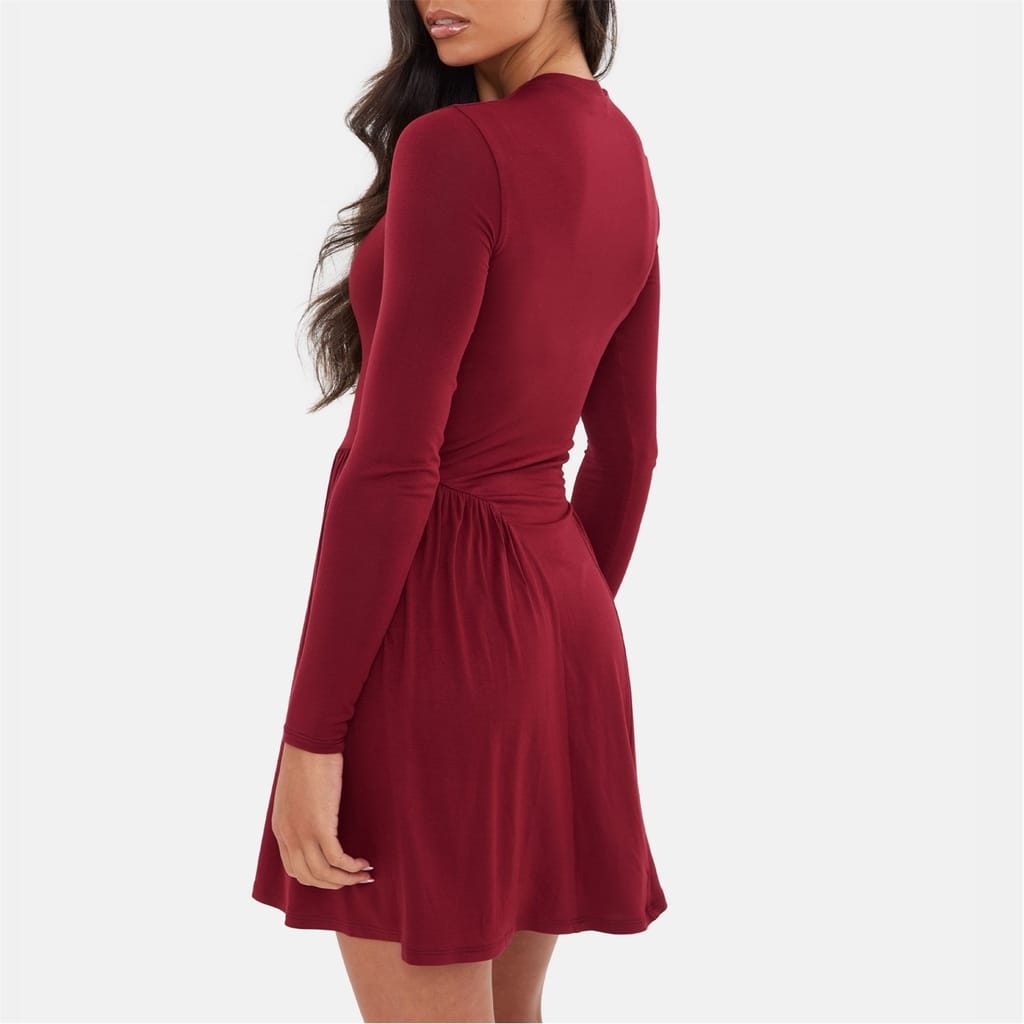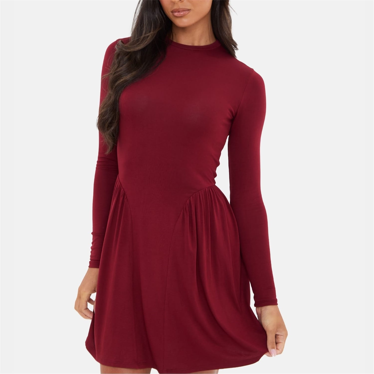 Turn heads with this dropped waist mini dress, a playful twist on a classic silhouette. Designed with a low-set waistline that falls below the natural waist, this dress elongates the torso and adds a relaxed, flirty vibe. The mini length keeps the look youthful and fun, while the dropped waistline often flows into a gathered, pleated, or flared skirt for added movement and texture. -