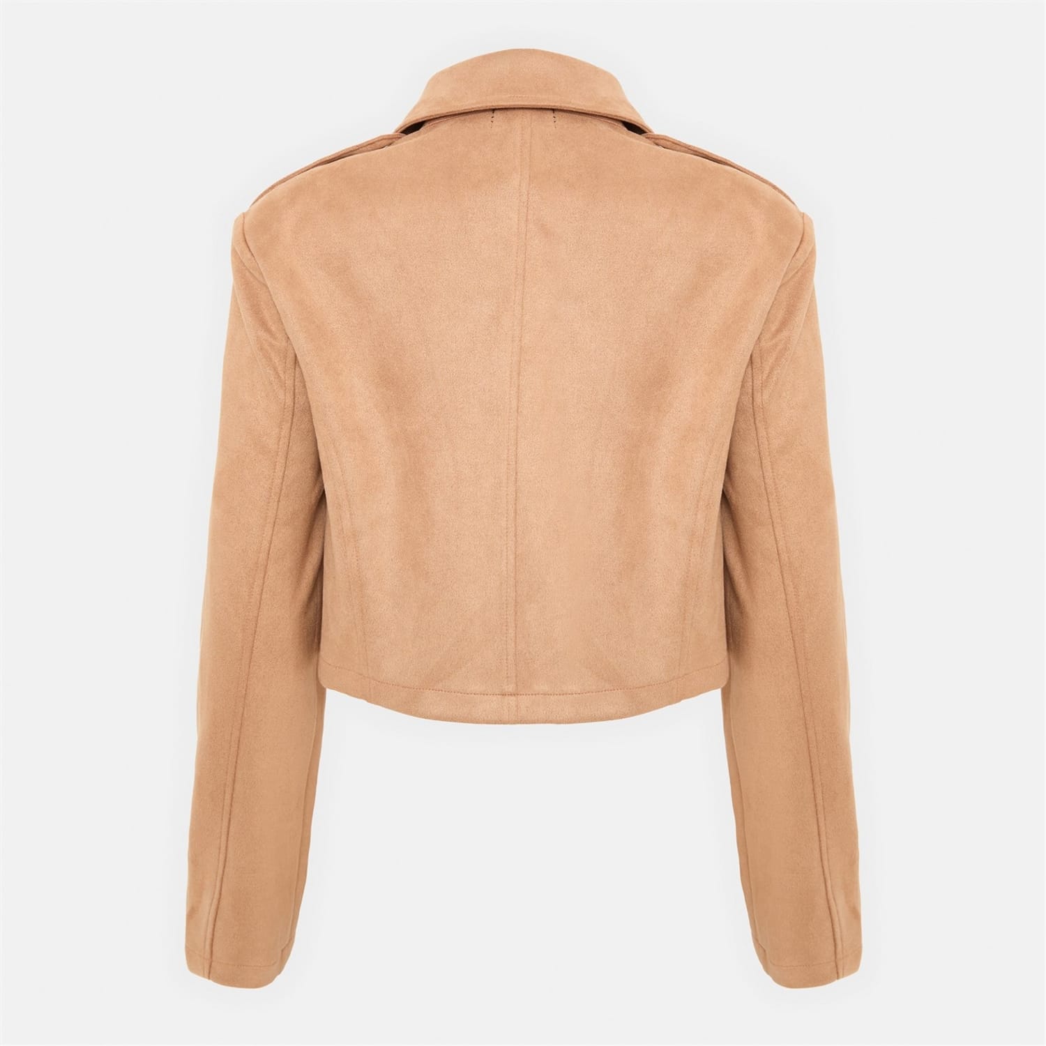 Edgy yet refined, this faux suede biker jacket features an asymmetric zip, notched lapels, and sleek hardware. A versatile layering piece that adds instant style to any outfit. -