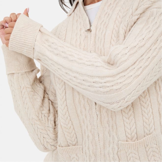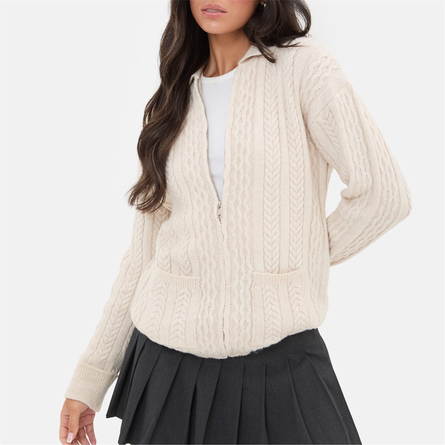 Wrap yourself in warmth and texture with the Cable Knit Zip Cardigan—a timeless piece designed for comfort and style. Featuring a classic cable knit pattern, this cardigan brings rich texture and traditional charm to your wardrobe. -