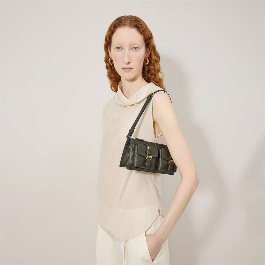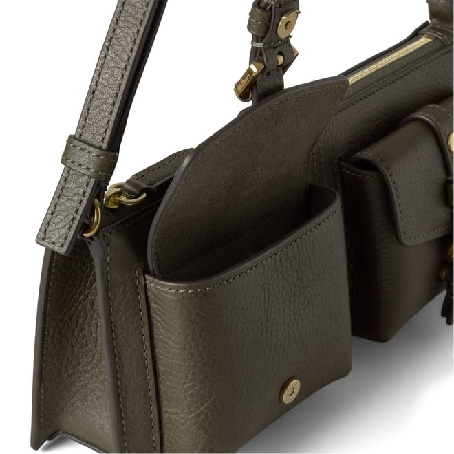 Mulberry's Mini Roxanne Satchel Handbag offers designer quality with compact proportions. The structured shape features a postman's lock fastening, maintaining fashion appeal in a small everyday size.