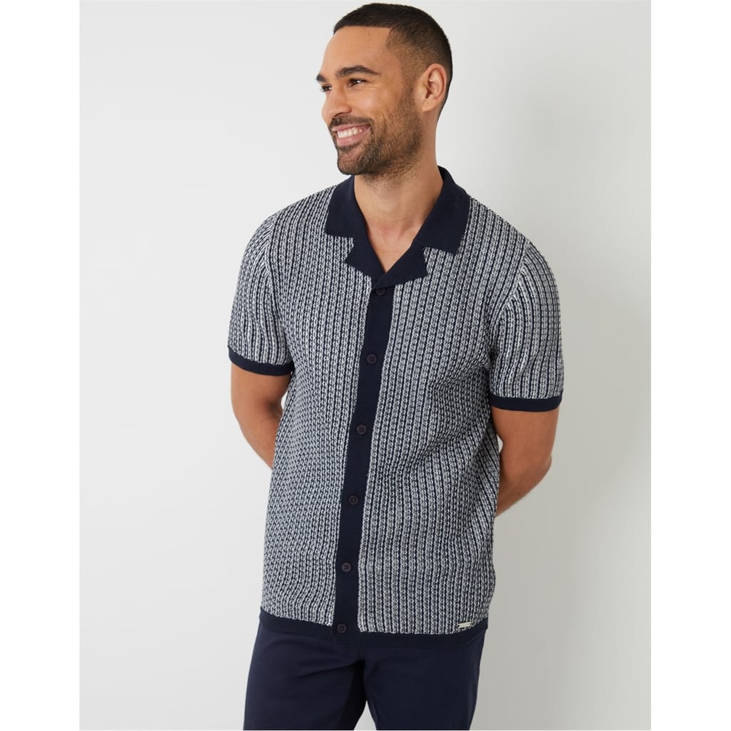 This Threadbare top features a geometric pattern and a polo collar, offering a classic look. Crafted with a knit texture, it has a button closure and short sleeves. The regular fit ensures comfort and style, making it a versatile addition to your wardrobe. -