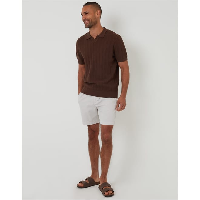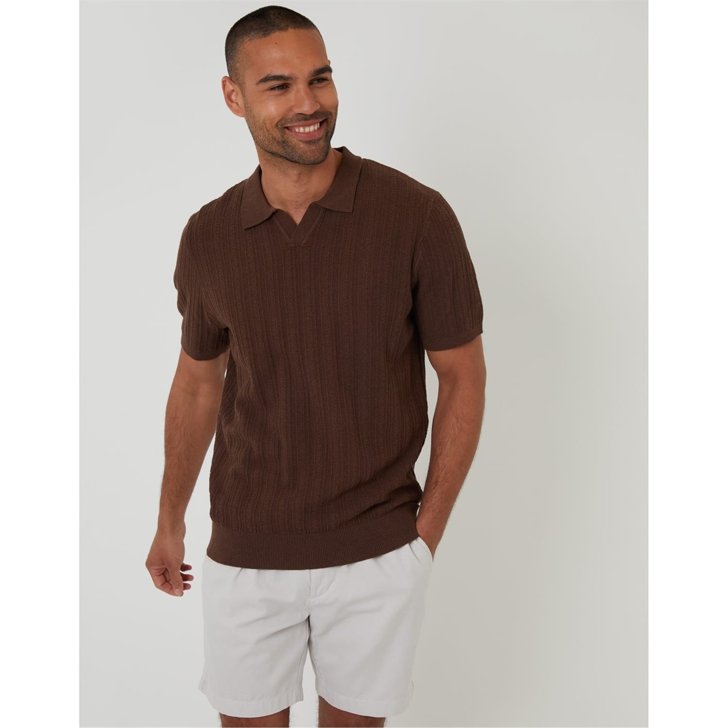 Discover the Threadbare top, featuring a classic polo collar and short sleeves. Crafted with a ribbed knit pattern, this piece offers a regular fit for comfortable wear. Ideal for those seeking a blend of style and simplicity. -