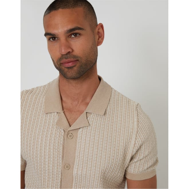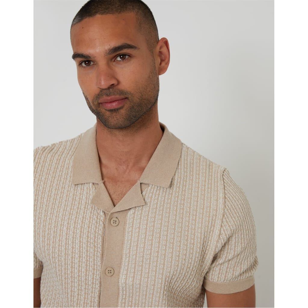 This Threadbare top features a classic polo collar and a button closure, offering a regular fit. The short sleeves and stripe pattern add a touch of style to this knit piece, making it a versatile addition to your wardrobe. -