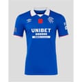 Stand proud in the famous royal blue with the Umbro Rangers Home Shirt 25/26. The moisture-wicking fabric keeps you cool and comfortable while on the move. Perfect for match days at Ibrox, training sessions, or casual wear to show your Rangers pride anywhere.