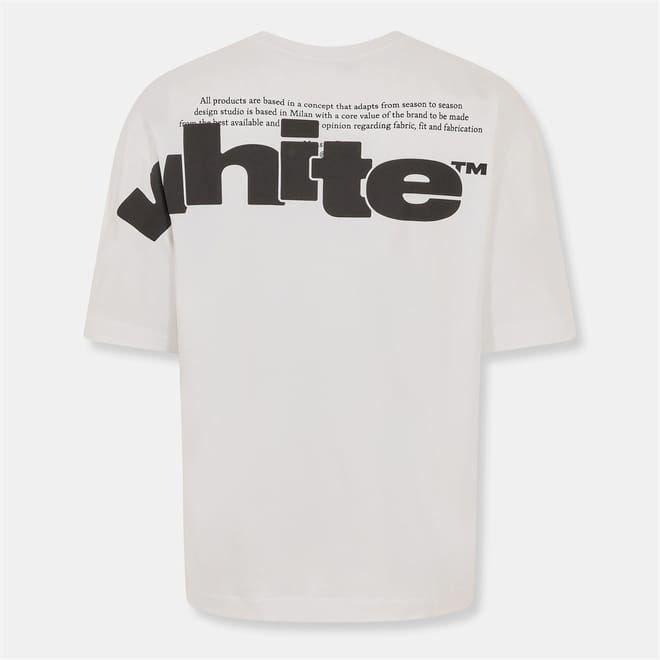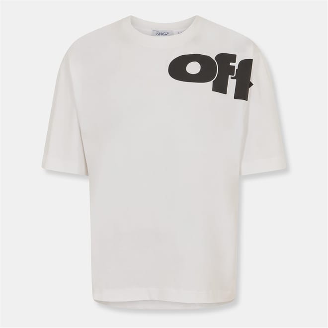This Off White top features a regular fit with a crew neck and short sleeves. The graphic pattern is complemented by a distinctive logo embellishment, adding a unique touch to the design. -