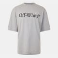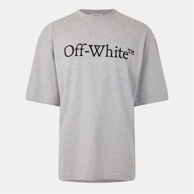 This Off White top features a regular fit with a crew neck and short sleeves. The solid pattern is complemented by a distinctive logo embellishment and lettering graphic, making it a standout piece in any casual collection. -