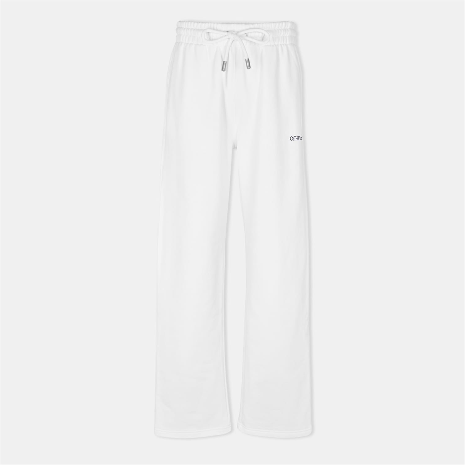 Off White sweatpants feature a drawstring closure and a regular fit, offering comfort and style. These sweatpants are adorned with pockets and a logo, making them a practical yet fashionable choice for casual wear. -