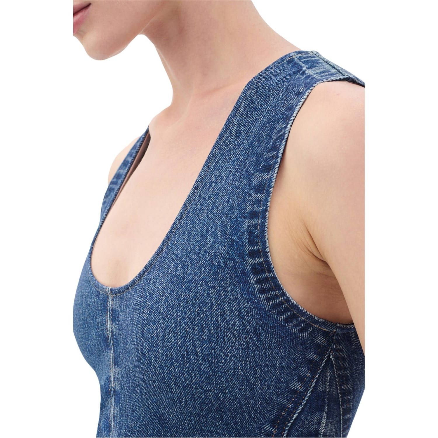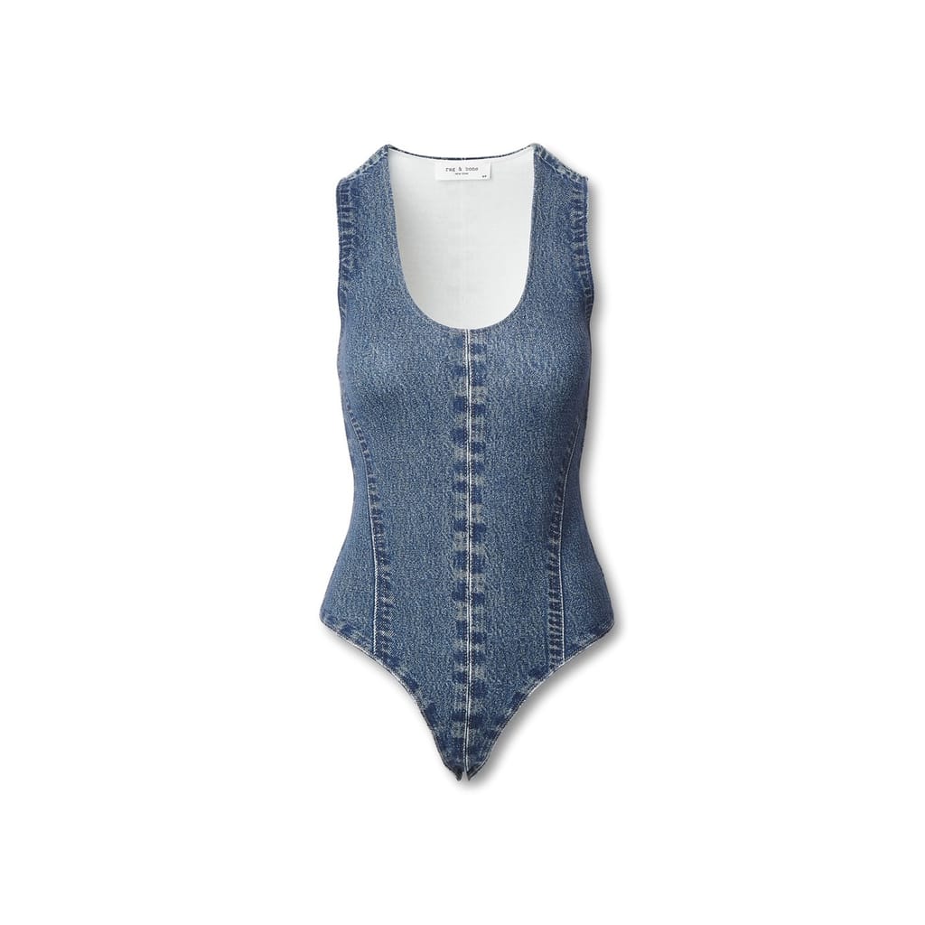 Discover the sleeveless top from rag & bone, featuring a scoop neck and a slim fit. The stone wash pattern adds a unique touch, while the curved hem provides a stylish finish. Perfect for those seeking a blend of comfort and modern design. -