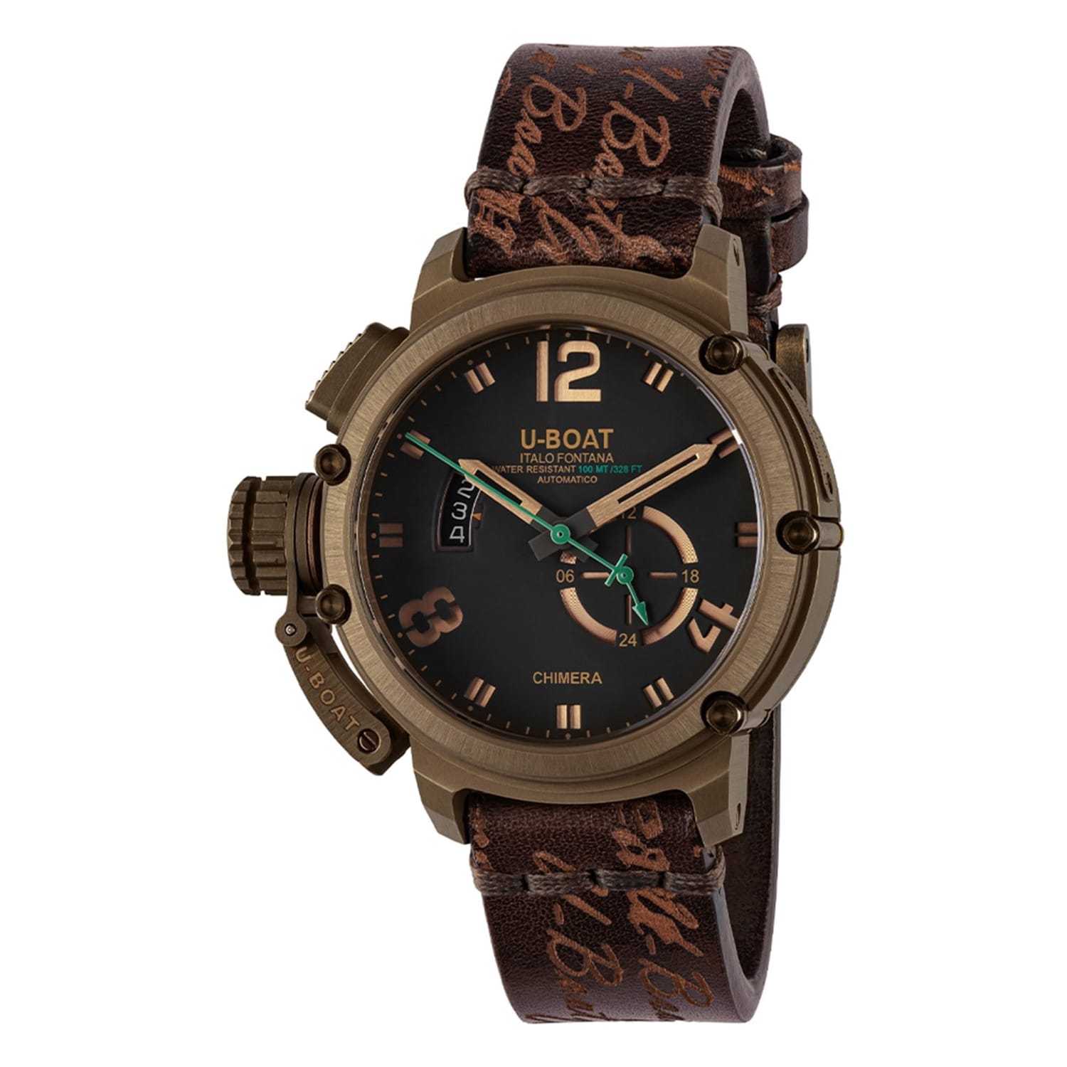 U-Boat's Darkmoon Automatic Analogue Watch features a 44 mm case diameter with a left-side crown placement. This timepiece showcases a sleek dial with luminous hour markers that reflects U-Boat's Italian watchmaking heritage.