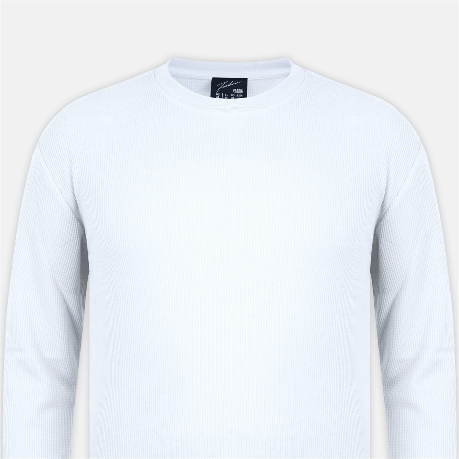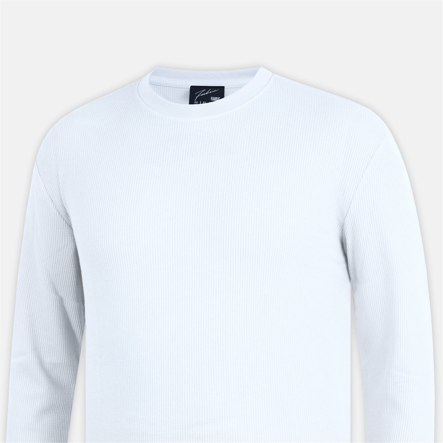 This Fabric top features a waffle pattern and a crew neck design. It offers a regular fit with long sleeves and ribbed cuffs, providing a comfortable and stylish option for your wardrobe. -
