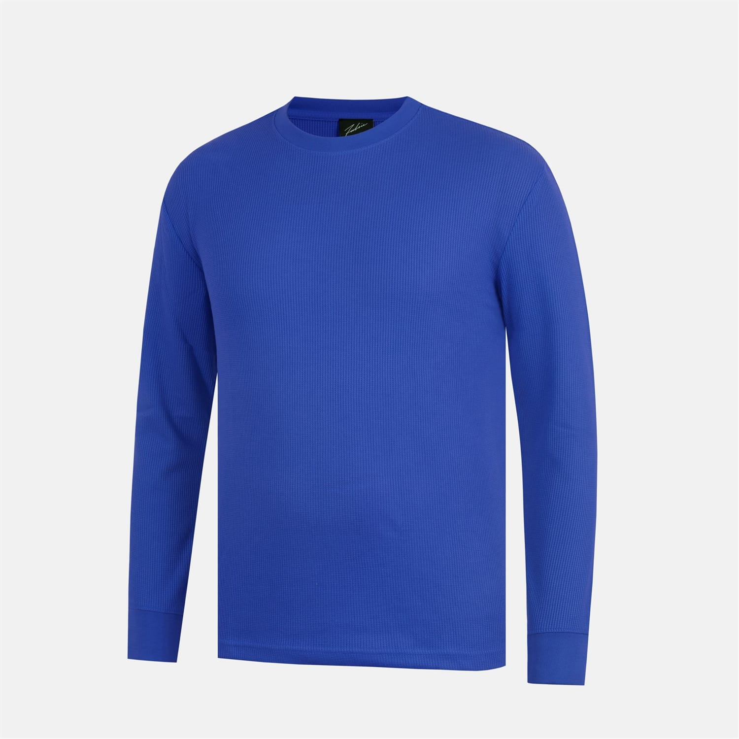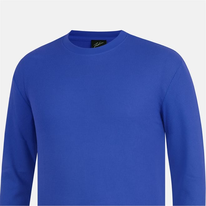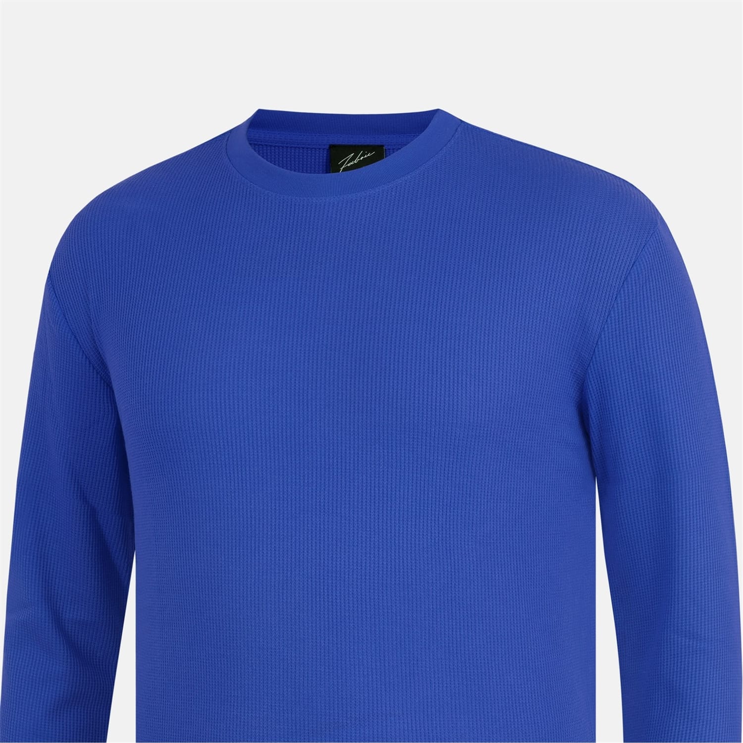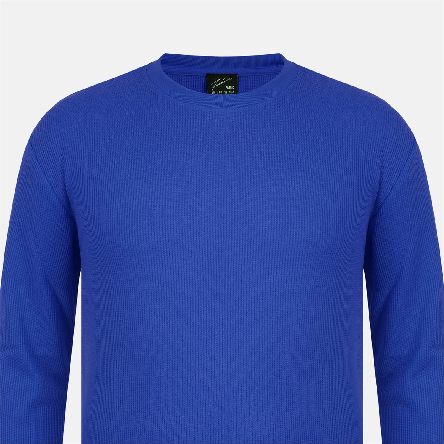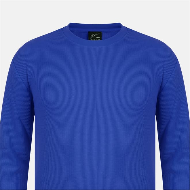 This Fabric top features a waffle pattern and a crew neck design. It offers a regular fit with long sleeves, complemented by ribbed cuffs and a ribbed collar for added comfort and style. -