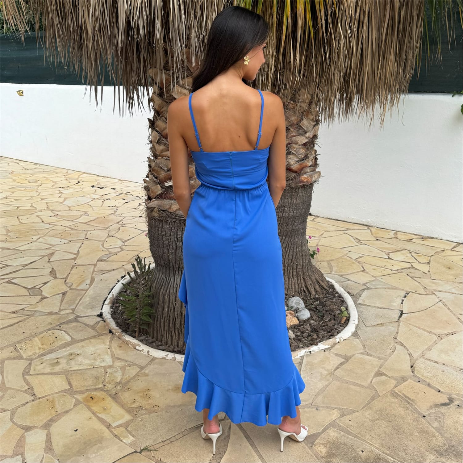 Our Racer Neck High Low Frill Hem Midi Dress is a must-have this season! Featuring a racer neckline, adjustable straps,a zip-up back, an elasticated back waist and midi length skirt with a high-low frilled hem. Style with heels and a cute bag for the perfect wedding guest look.