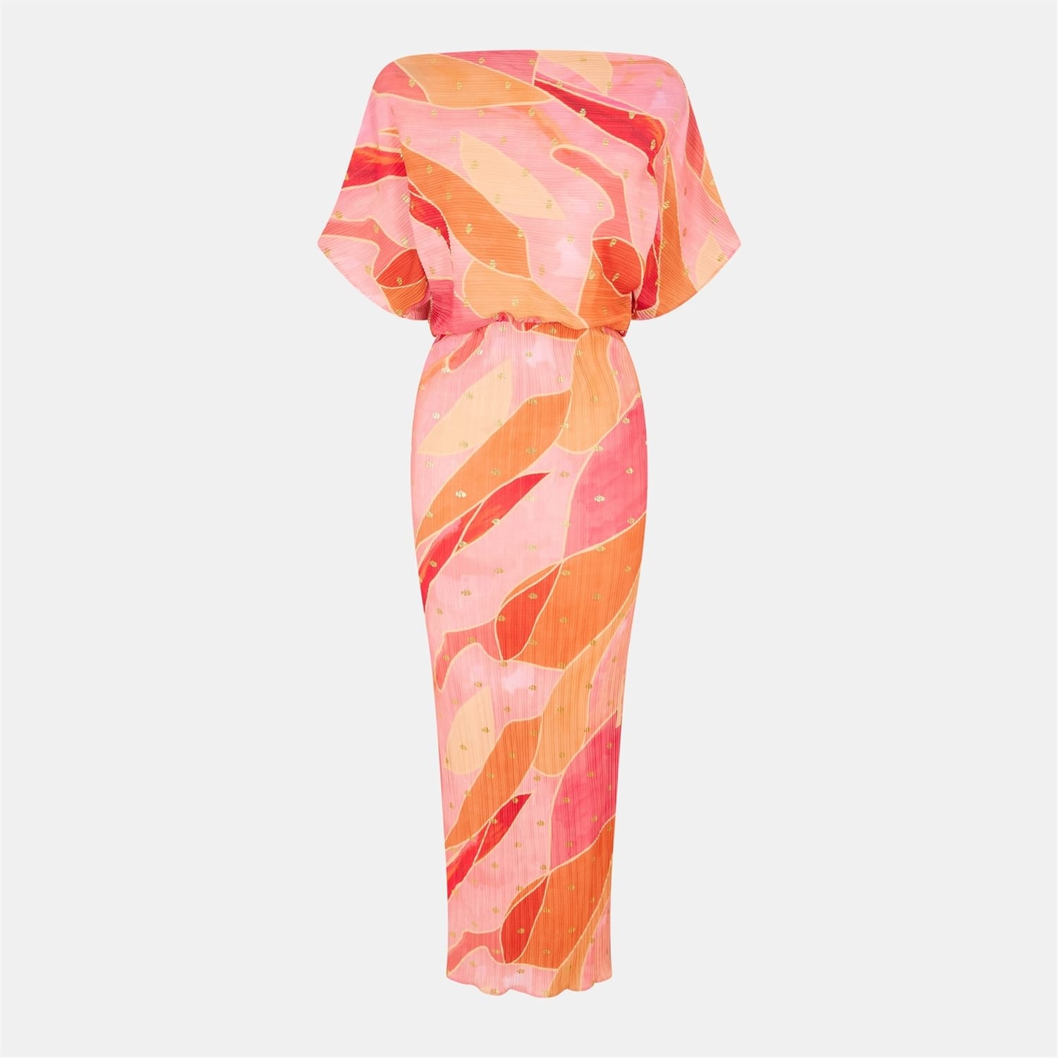 This Never Fully Dressed maxi dress features an abstract pattern, offering a unique and stylish look. The off-the-shoulder neckline adds a touch of elegance, while the straight hemline provides a clean finish. Perfect for making a statement, this dress combines contemporary design with classic elements. -