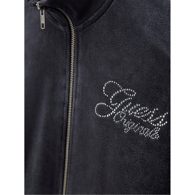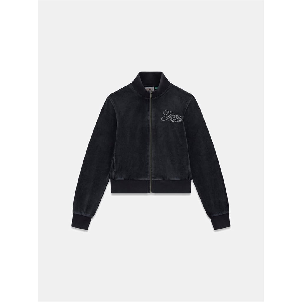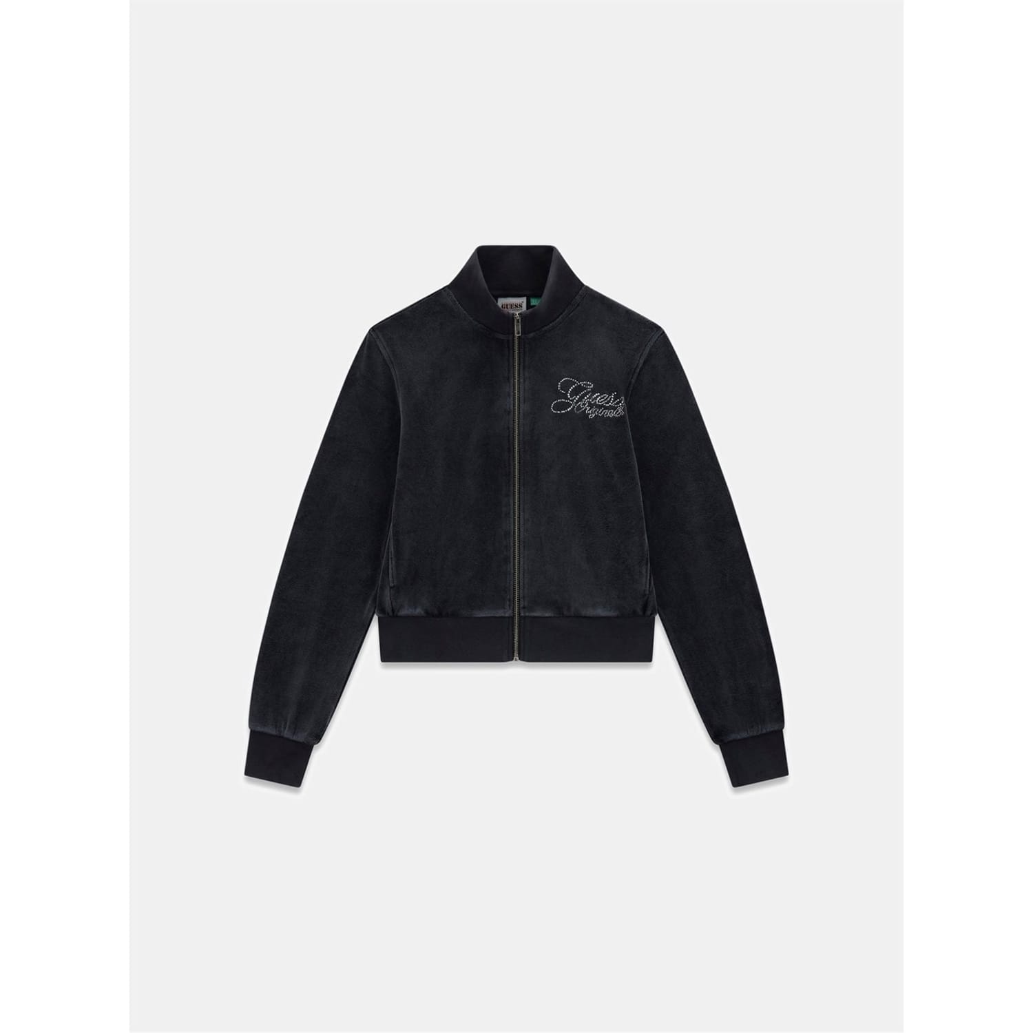 This Guess top features a mock neck and long sleeves, offering a regular fit. The bomber collar and ribbed cuffs add a touch of style, while the banded hem ensures a neat finish. A chest logo embellishment and solid pattern with logo print complete the design, making it a versatile addition to your wardrobe. -