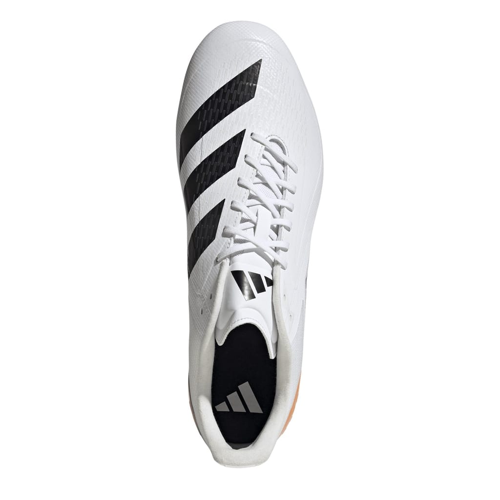 adidas' Adizero RS15 Ultimate Soft Ground Rugby Boots keep things lightweight with a synthetic forefoot and durable ripstop fabric in the rearfoot. Sensepods in the heel ensure you stay strapped in for sprints and asymmetrical lacing and 3D-printed elements help produce accurate kicks.