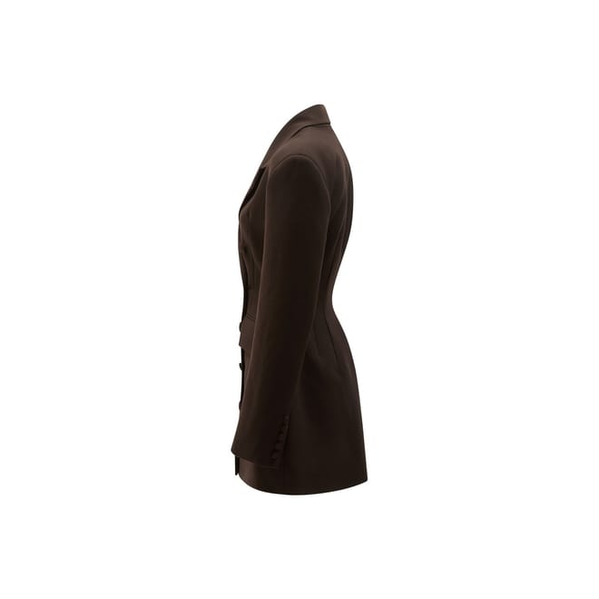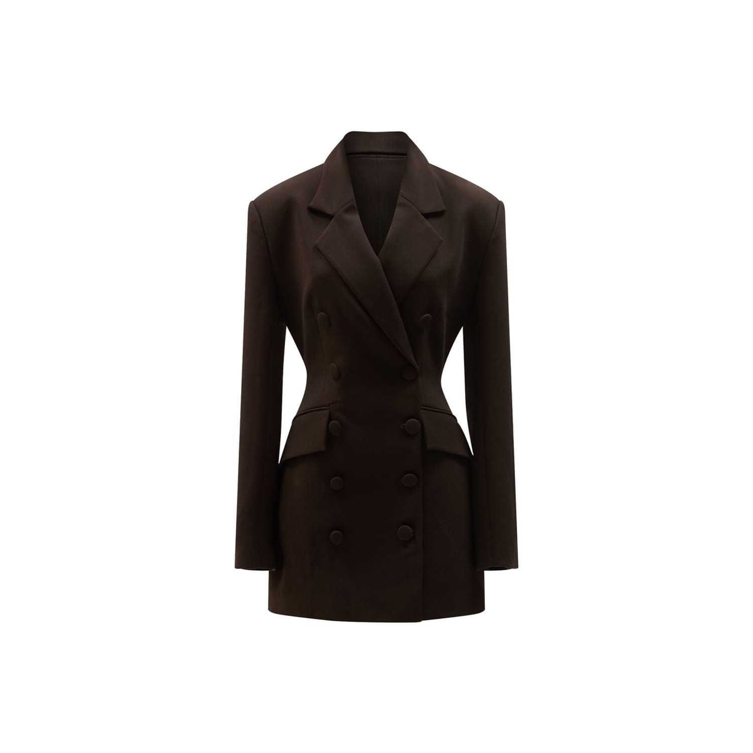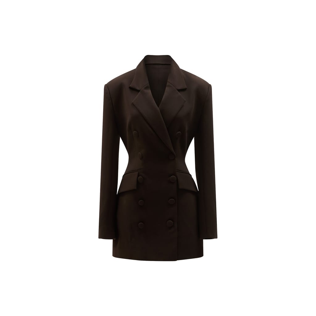 The Serra Hourglass Blazer Dress is designed for late night impact. In a mini silhouette, it features a tailored fit with large buttons, flap pocket detailing, a notched lapel and long sleeves.