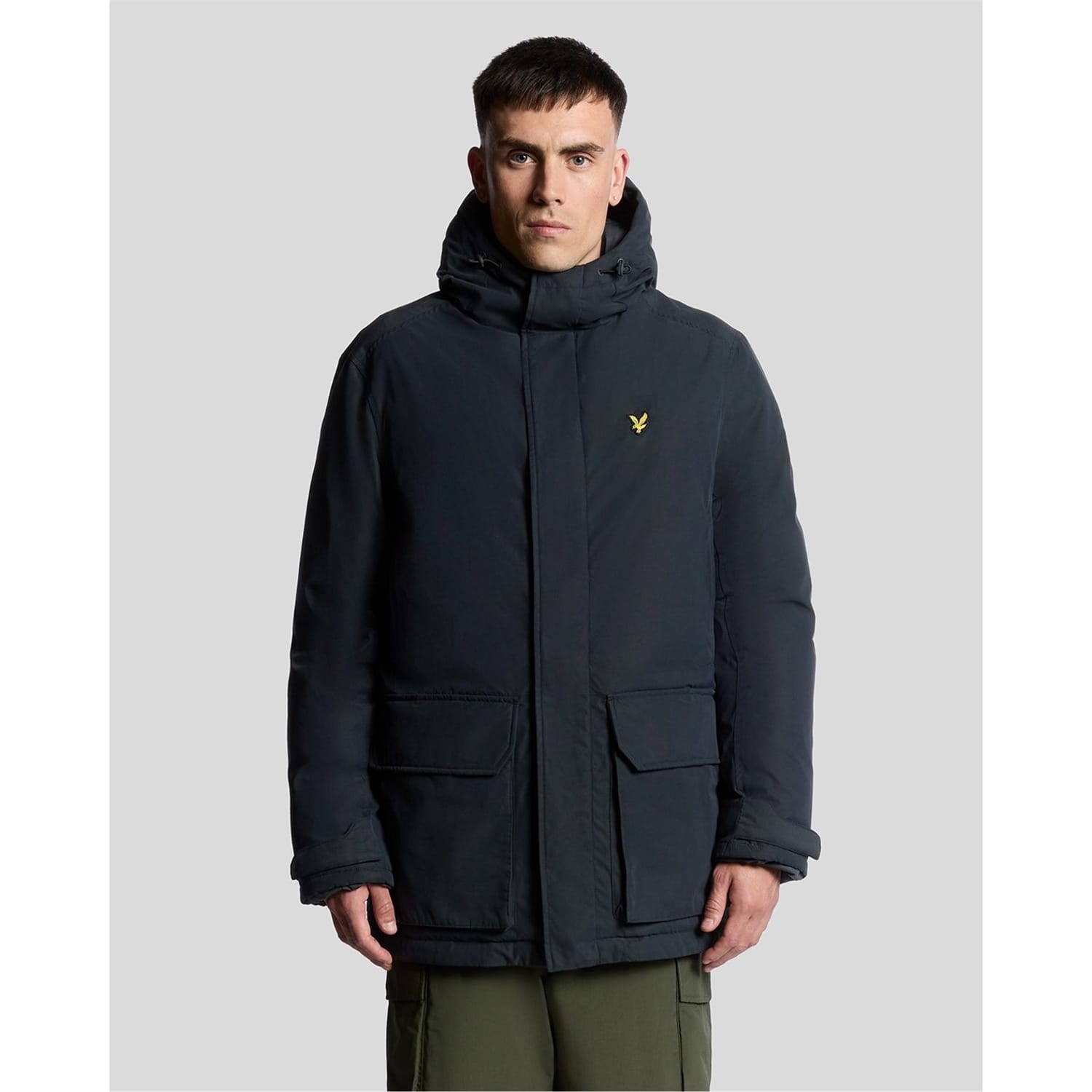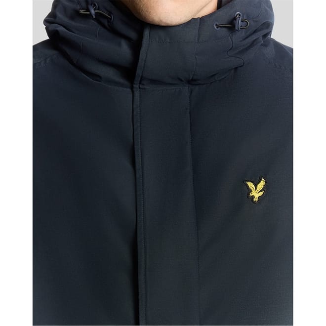 The Lyle & Scott parka coat is a winter essential, featuring a quilted design for added warmth. This hooded jacket is part of the sport and casual collections, offering a regular fit with a solid pattern. It includes a zipper closure, straight hem, and practical pockets. The iconic logo embellishment adds a touch of brand identity. -