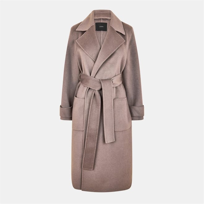 This Joseph overcoat is a winter essential, featuring a relaxed fit and a lapel collar. The solid pattern and straight hem offer a classic look, while the cuff sleeves add a touch of sophistication. Practical pockets and a tie belt closure complete the design, making it both stylish and functional for the colder months. -