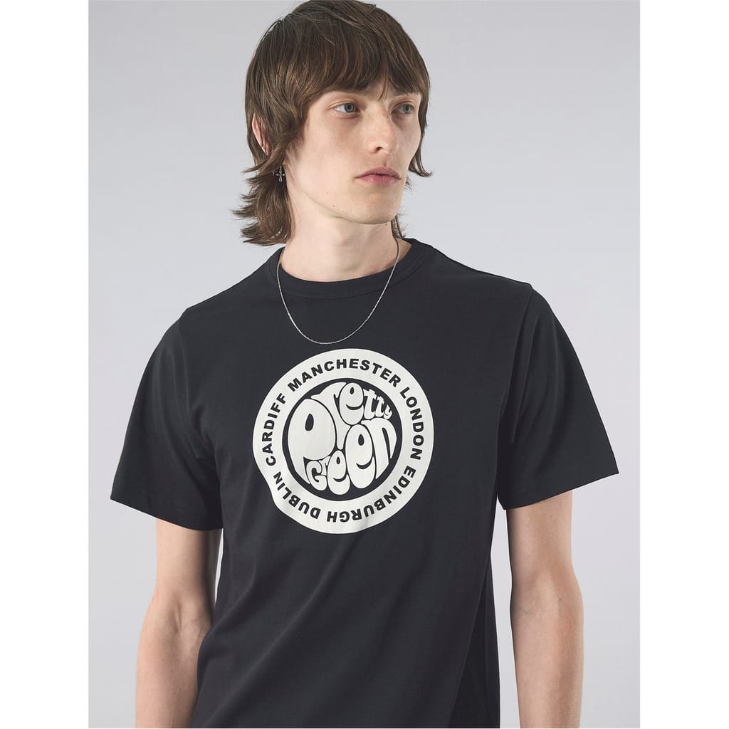 This Pretty Green top is a casual staple featuring a regular fit and short sleeves. The crew neck design is adorned with a graphic print and a logo embellishment, adding a distinctive touch to your wardrobe. -