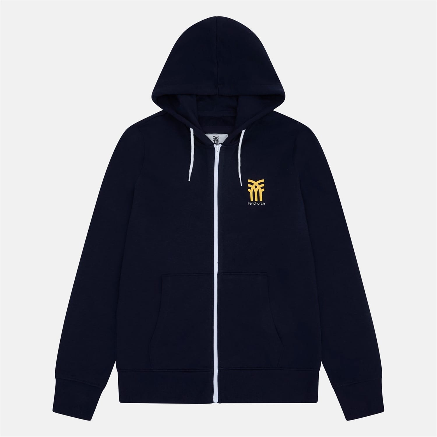 This Fenchurch top features a hooded neck and a convenient zipper closure. Designed with long sleeves and ribbed cuffs, it offers a regular fit for casual wear. The graphic print adds a stylish touch, while the logo embellishment subtly highlights the brand's identity. -
