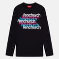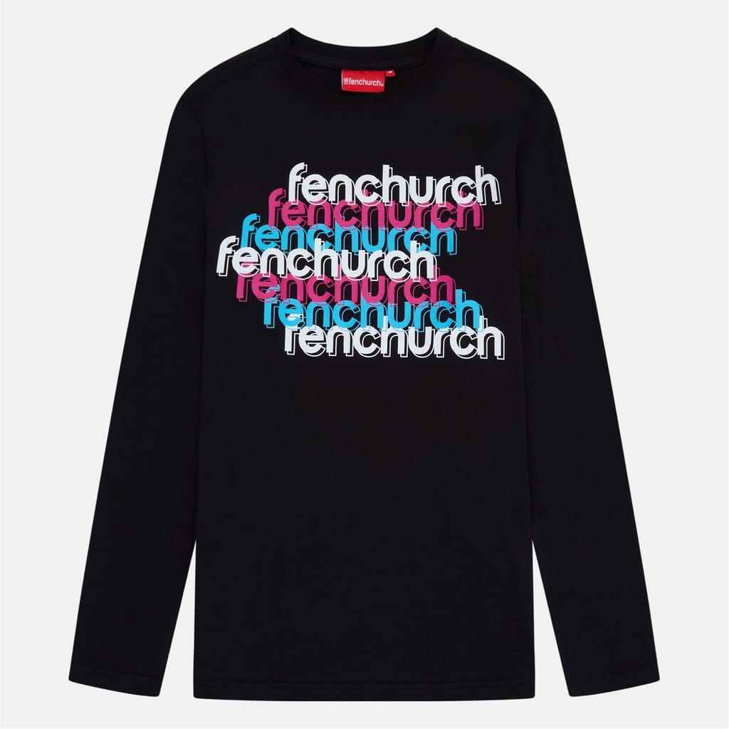 This Fenchurch top features a long sleeve design with a crew neck, offering a regular fit. The graphic print is enhanced by lettering and a logo embellishment, adding a distinctive touch to the piece. -