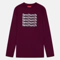 This Fenchurch top features a regular fit with long sleeves and a crew neck. The design is enhanced by a graphic print with lettering and a logo embellishment, offering a stylish touch. -