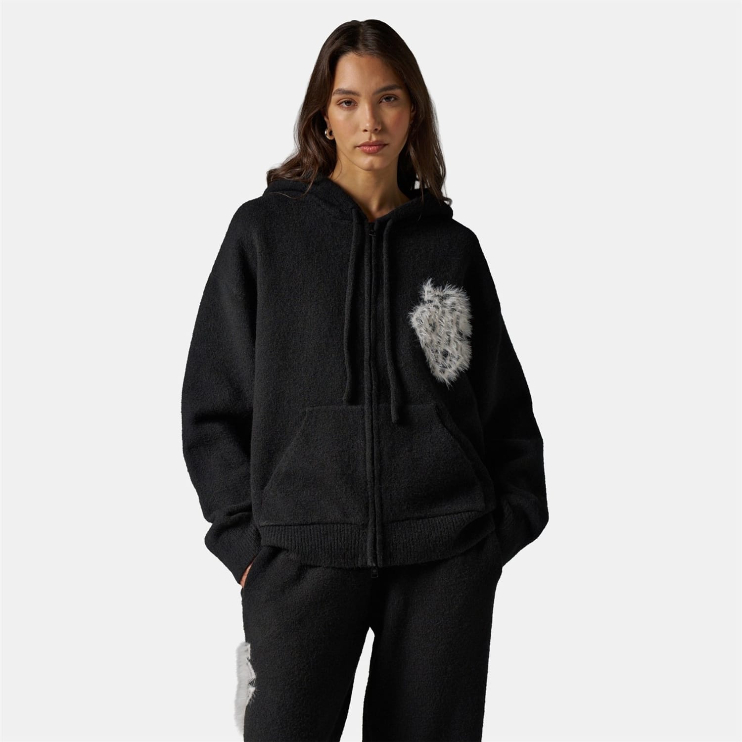 Update your weekend wardrobe with The Couture Club’s Fluffy Knit Zip Hoodie. It’s cosy thanks to ribbed trims, while block colours keep styling simple. Ideal for downtime and running errands.