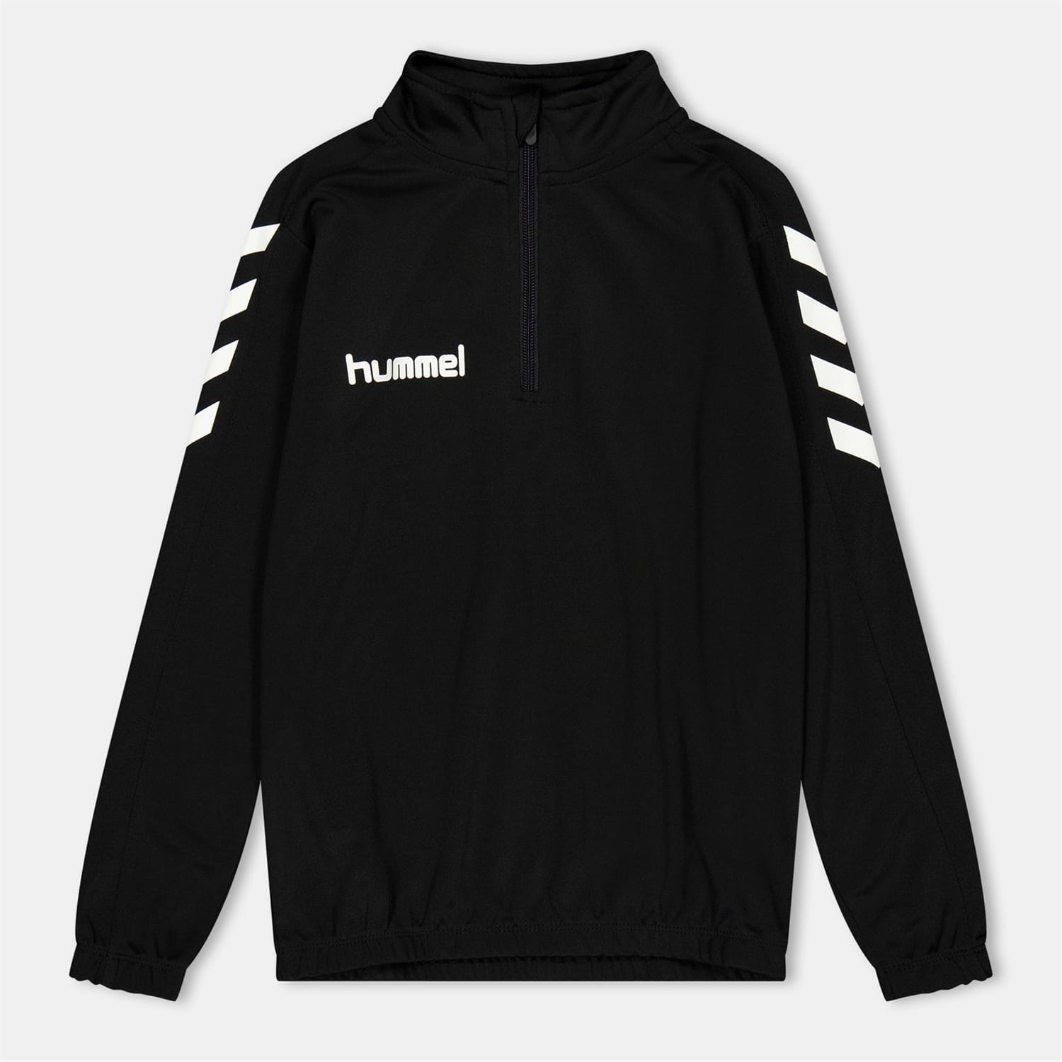 This Hummel top is a perfect addition to your activewear collection. Featuring a quarter zipper closure and a zip neck, it offers a regular fit with long sleeves and elasticated cuffs. The solid pattern is complemented by a subtle logo embellishment, making it a versatile choice for various activities. -