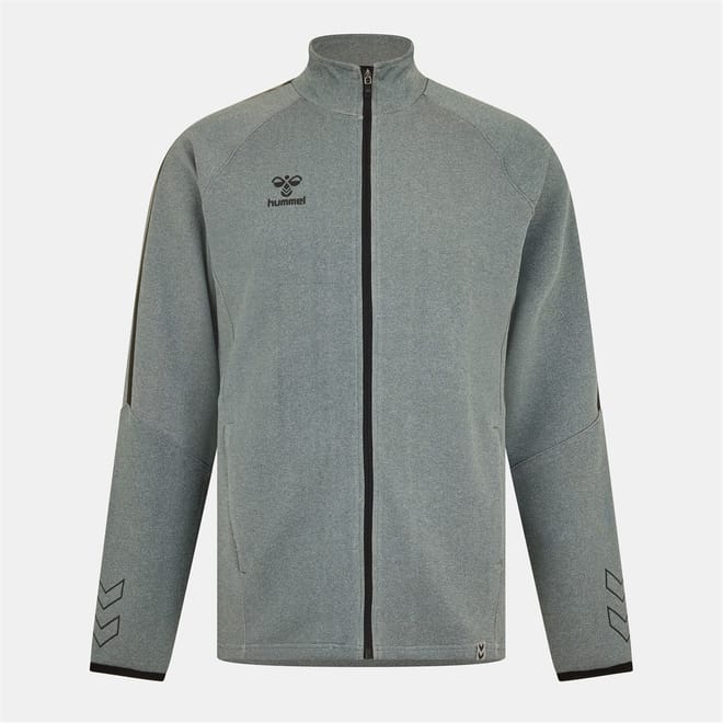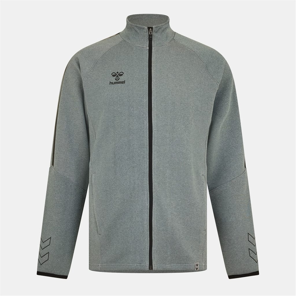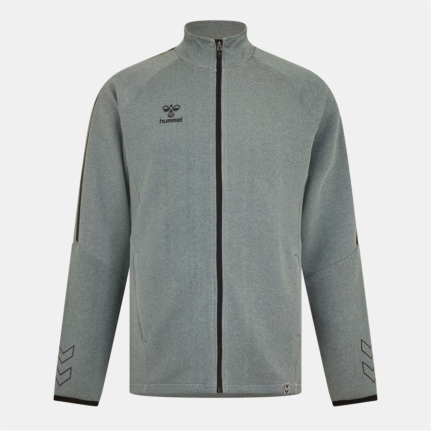 This Hummel track jacket features a heathered pattern and a regular fit, offering a stylish yet comfortable look. The jacket is designed with a zip neck and a zipper closure for convenience. Raglan sleeves provide ease of movement, while ribbed cuffs and hem ensure a snug fit. The jacket is embellished with a logo, adding a touch of brand identity. -