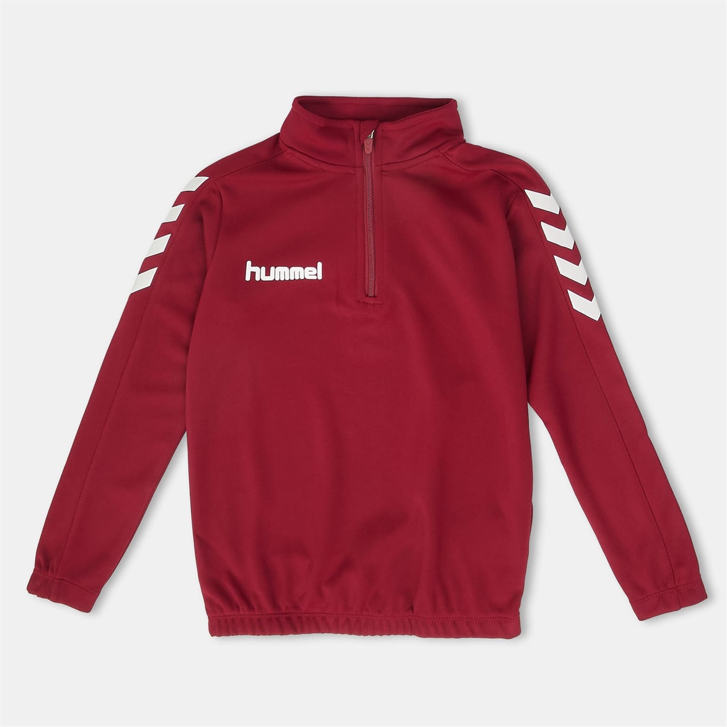This Hummel top is a perfect addition to your activewear collection. Featuring a quarter zipper closure and a zip neck, it offers a regular fit with long sleeves and elasticated cuffs. The solid pattern is complemented by a subtle logo embellishment, making it a versatile choice for various activities. -