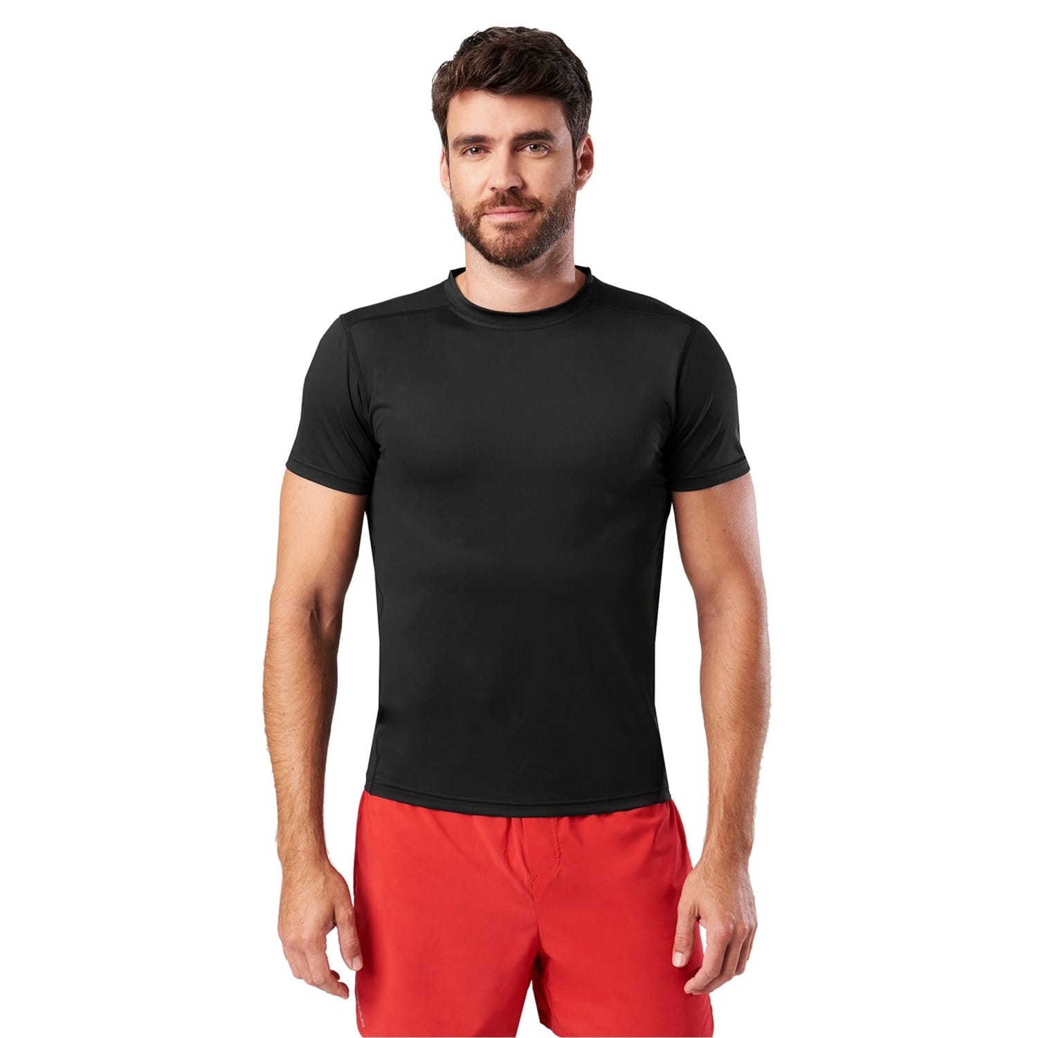 Discover the Nathan performance top, designed for those who value functionality and style. This slim fit piece features a crew neck and short sleeves, offering a solid pattern for a sleek look. Ideal for active pursuits, it combines comfort with a modern aesthetic. -