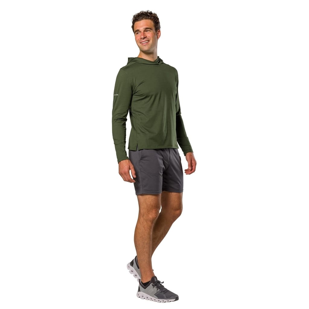This Nathan top is designed for activewear enthusiasts. Featuring a hooded neck and long sleeves, it offers a regular fit for optimal comfort. The solid pattern adds a sleek touch, making it a versatile addition to your performance wardrobe. -