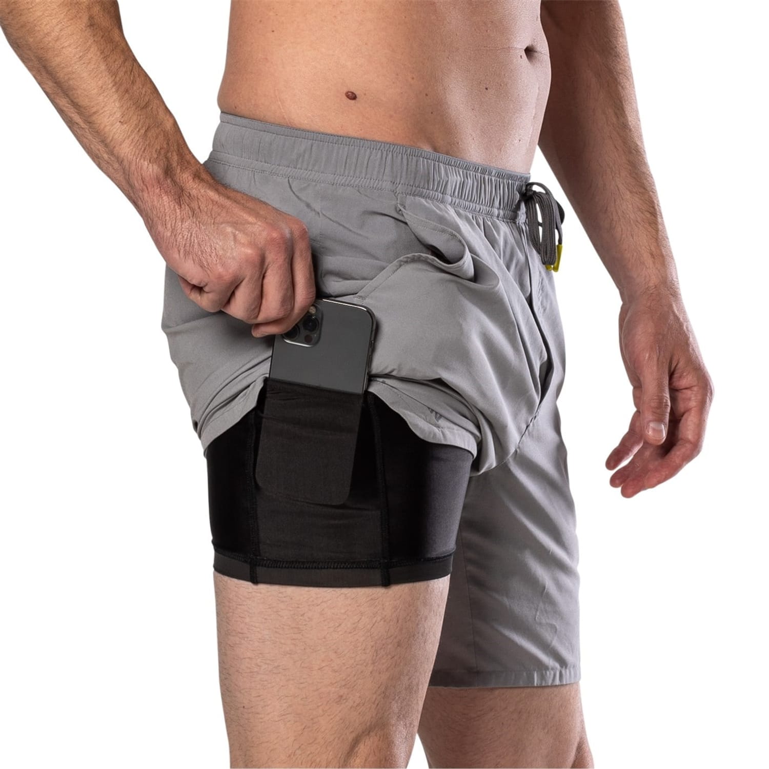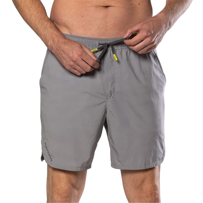 Discover Nathan's solid bermuda shorts, designed for activewear enthusiasts. These performance shorts feature a convenient drawstring closure and multiple pockets, including a side and phone pocket, ensuring practicality during your running sessions. The subtle logo adds a touch of style, making them a versatile addition to your casual and activewear collection. -