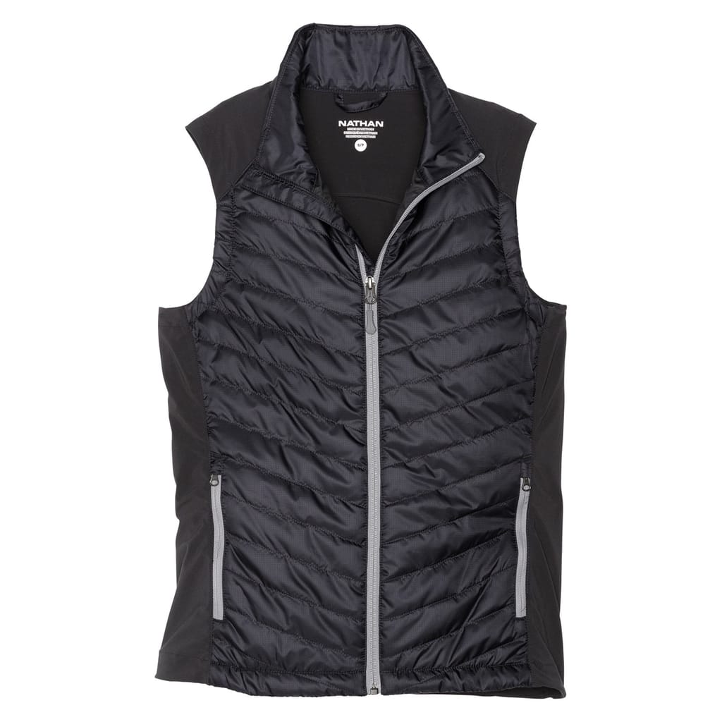 The Nathan performance gilet from the activewear collection is designed for functionality and style. Featuring a solid pattern, it includes a zipper closure and practical zipped pockets. The gilet is embellished with a logo, adding a touch of brand identity. Ideal for those seeking a versatile and efficient addition to their wardrobe. -