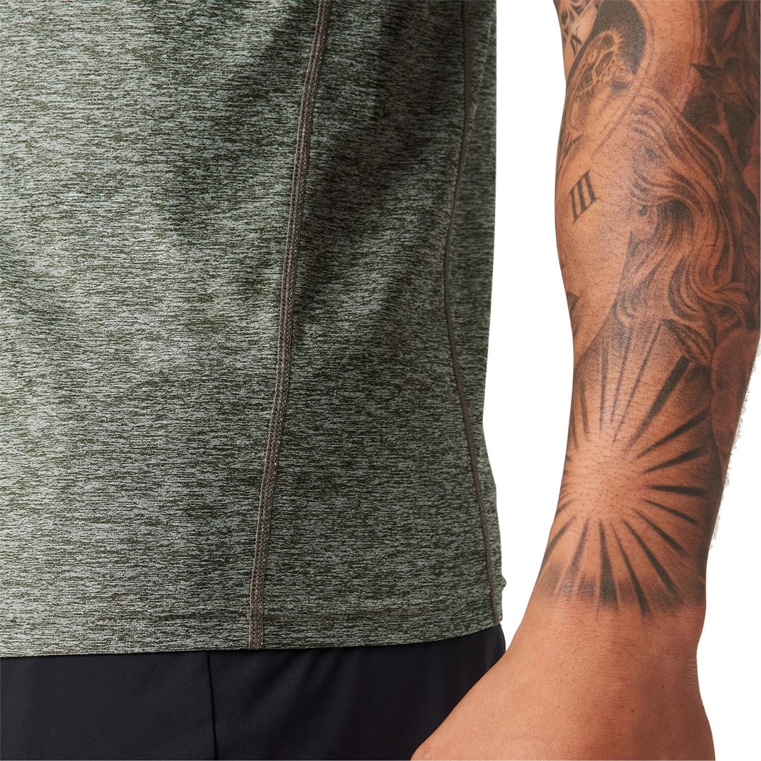 This Nathan top is designed for activewear enthusiasts. Featuring a heathered pattern and a crew neck, it offers a regular fit with short sleeves. The performance attribute ensures comfort during activities, while the logo embellishment adds a touch of brand identity. -
