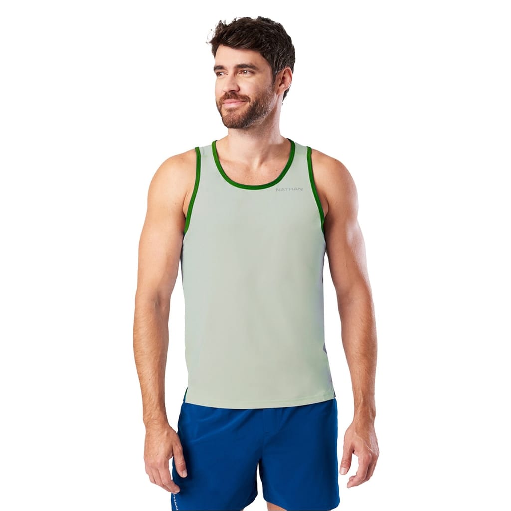 Discover the Nathan sleeveless top, a solid piece from the activewear collection. Designed for performance, it features a subtle logo embellishment, making it a perfect choice for those seeking functionality and style in their workout attire. -