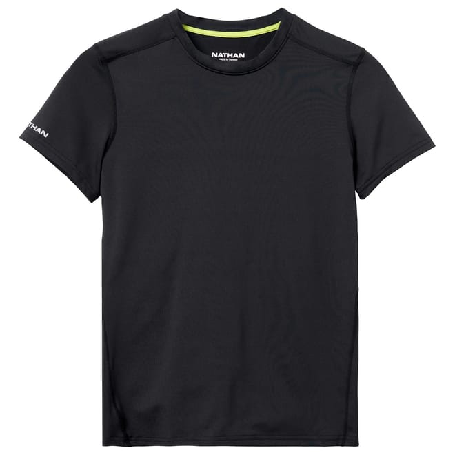 This Nathan top is designed for activewear enthusiasts. Featuring a crew neck and short sleeves, it offers a regular fit for comfort during performance activities. The solid pattern is complemented by a subtle logo embellishment, making it a versatile addition to your active wardrobe. -