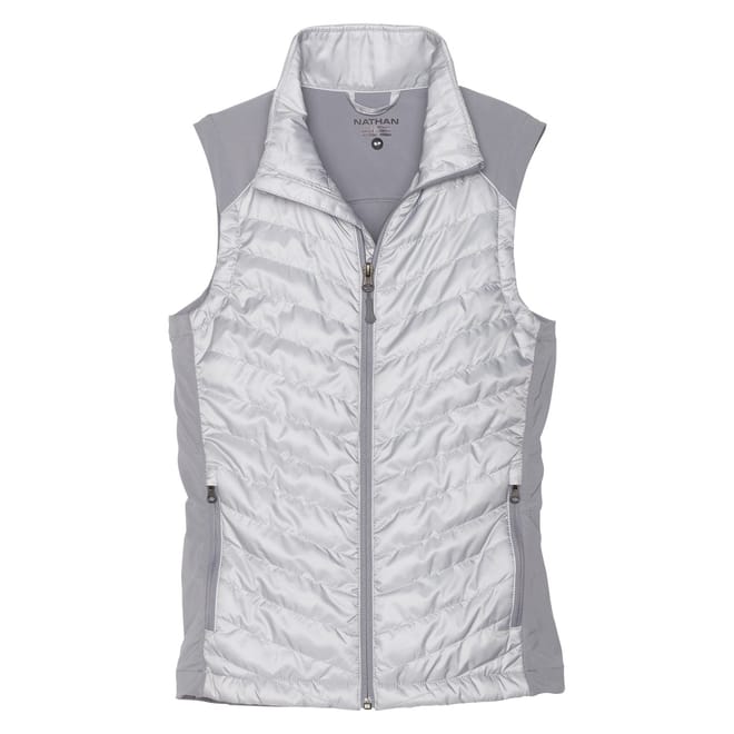 The Nathan performance vest from the activewear collection is designed for optimal functionality. Featuring a solid pattern and a convenient zipper closure, this vest is perfect for active pursuits. The Nathan logo embellishment adds a touch of brand identity to this versatile piece. -