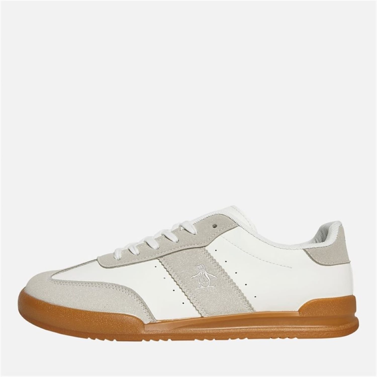 Update your key pieces with Original Penguin's Giovanni Trainers. Expertly crafted in a classic low-top silhouette with a panelled design, these men's shoes are perfect for everyday wear. Whether you are playing a round of golf, running errands at the weekend or entertaining friends at home, this pair will become your new go-tos.