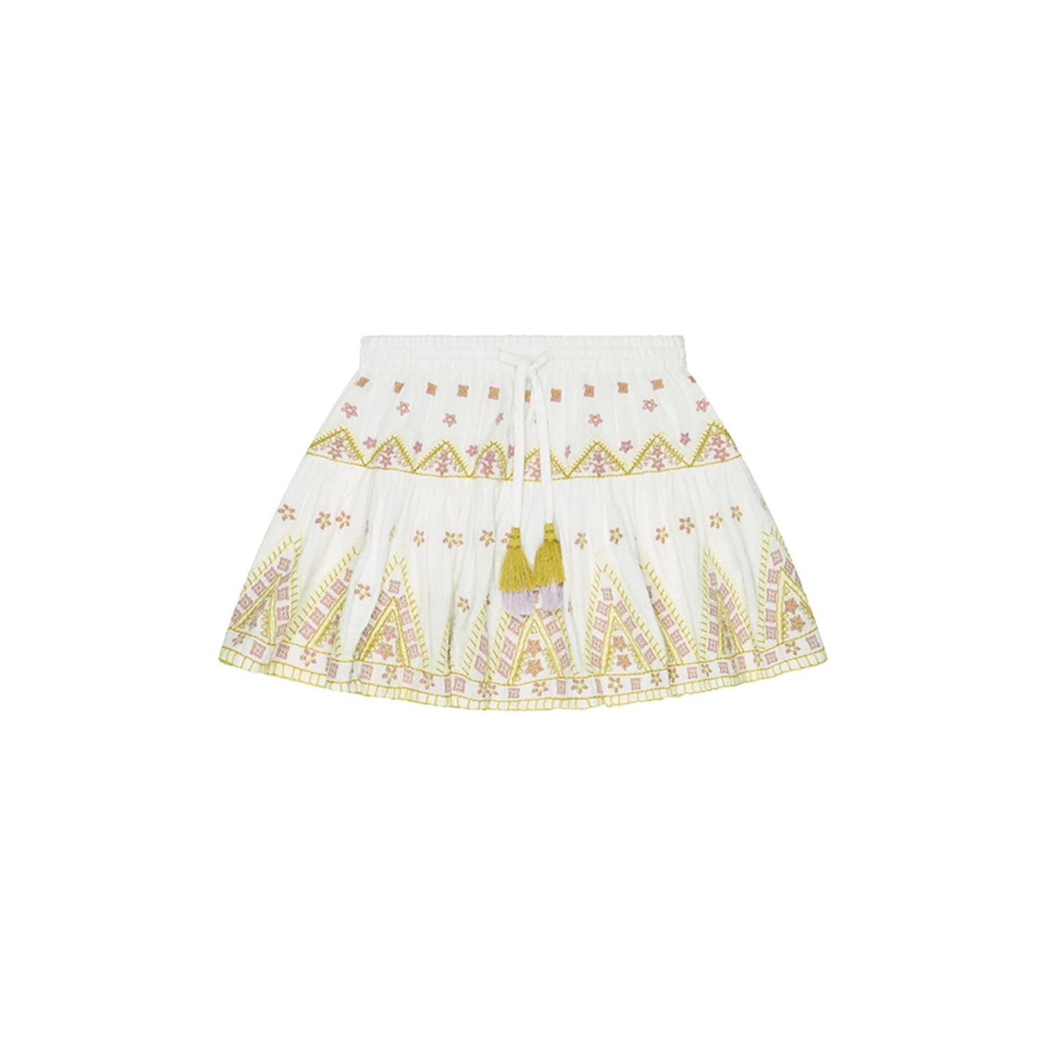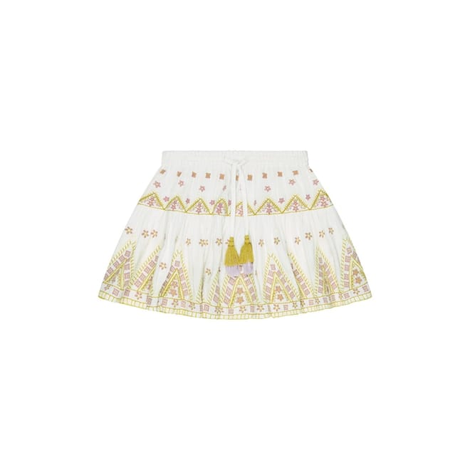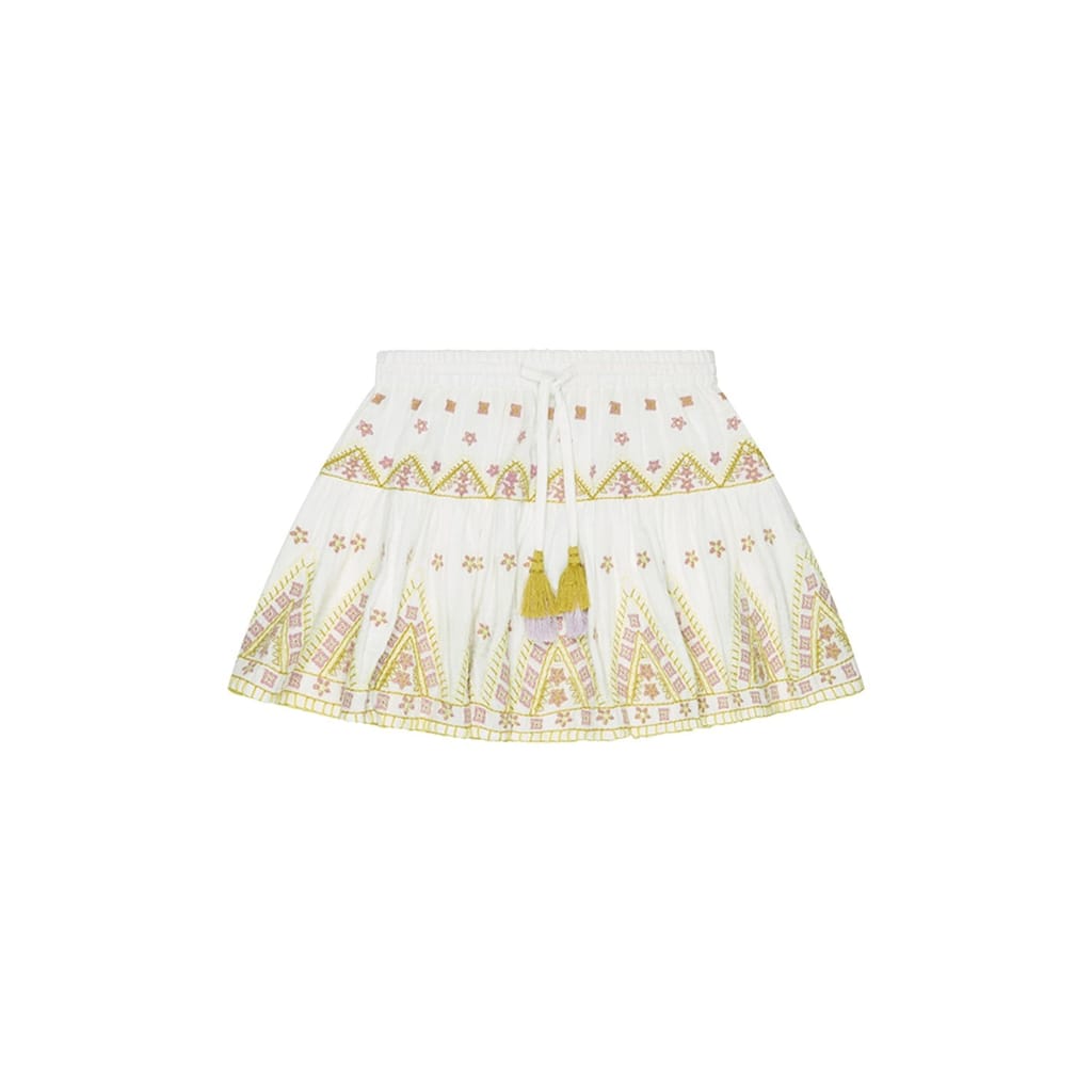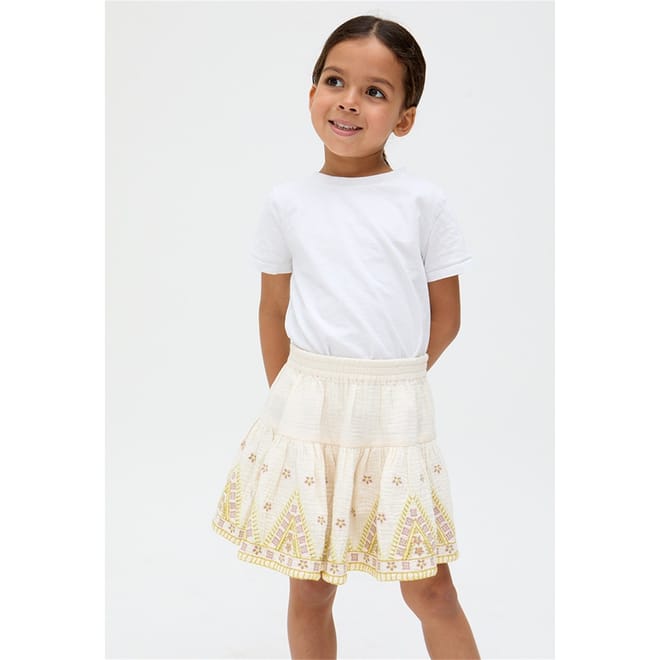 The Staranisse tiered skirt is a dreamy and elegant addition to your little one’s wardrobe. This skirt features delicate all-over embroidery, adding a touch of charm and sophistication to its design. The tiered structure creates a playful, flowy silhouette that moves beautifully, while the soft cream color keeps it fresh and versatile. Pair it with a simple tee for a stylish, comfortable look your little one will love. -