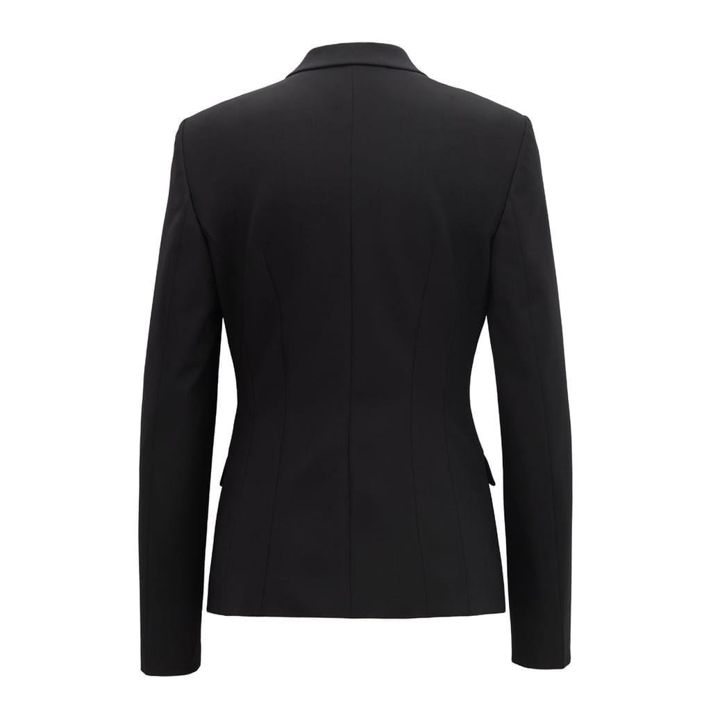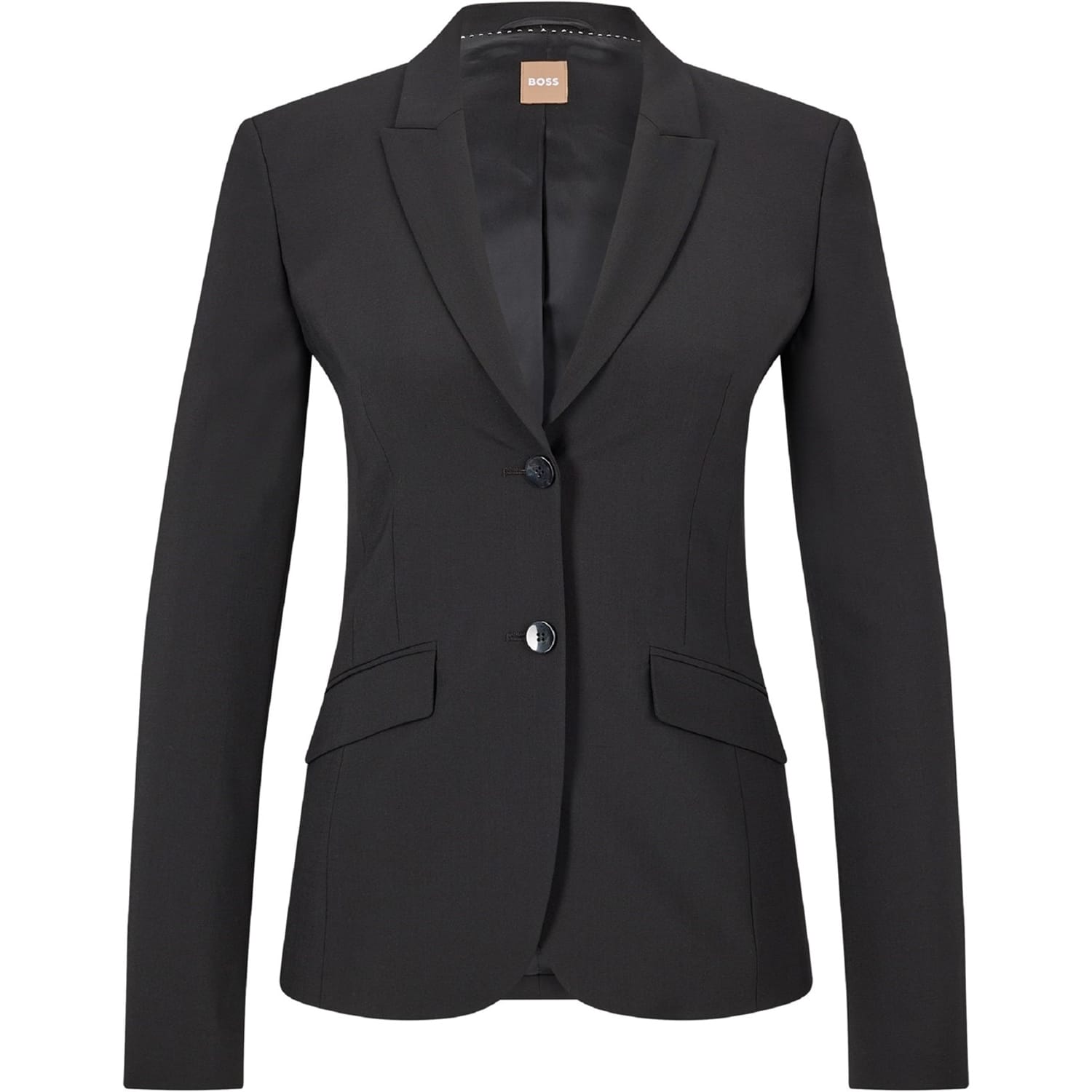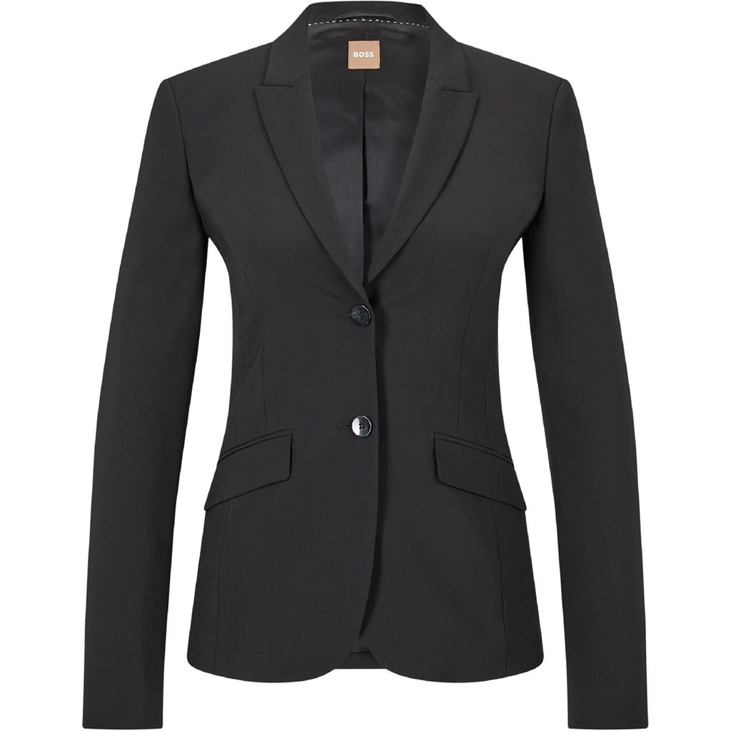 This Boss blazer from the workwear collection is a sophisticated choice for professional settings. Crafted in a solid pattern, it features a lapel collar and a button closure for a classic look. The slim fit and short length offer a modern silhouette, while the straight hem adds a neat finish. -