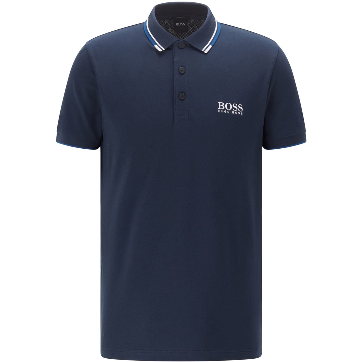 This Boss top features a classic polo collar and a button closure, offering a regular fit. The short sleeves and solid pattern provide a timeless look, while the logo embellishment adds a touch of brand identity. -