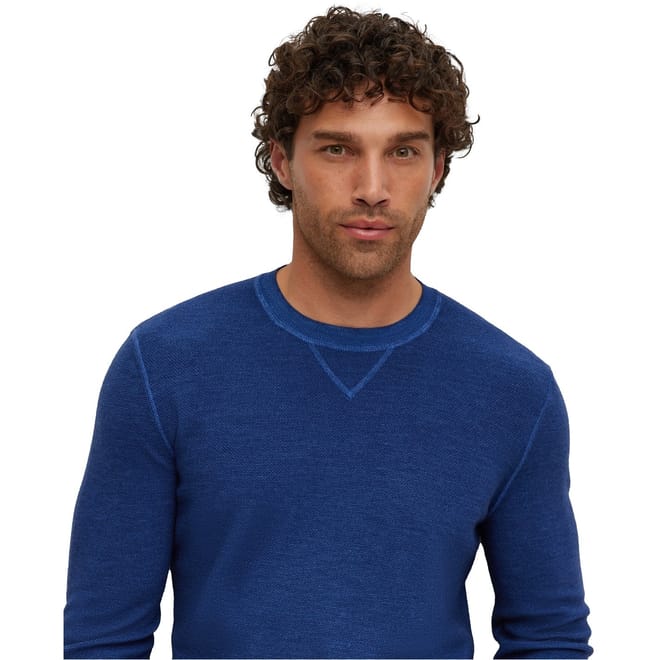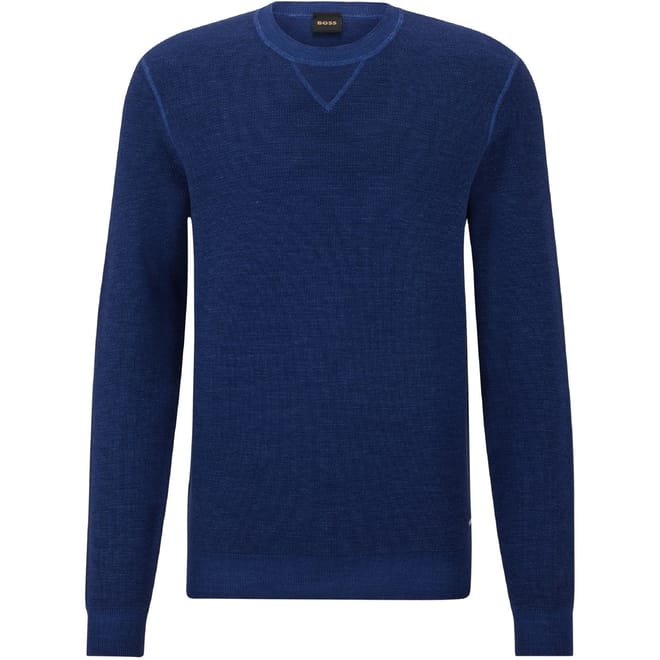 This Boss top features a solid pattern with a crew neck and long sleeves. Designed in a regular fit, it includes ribbed cuffs for added comfort. The top is embellished with a logo, adding a subtle touch of brand identity. -