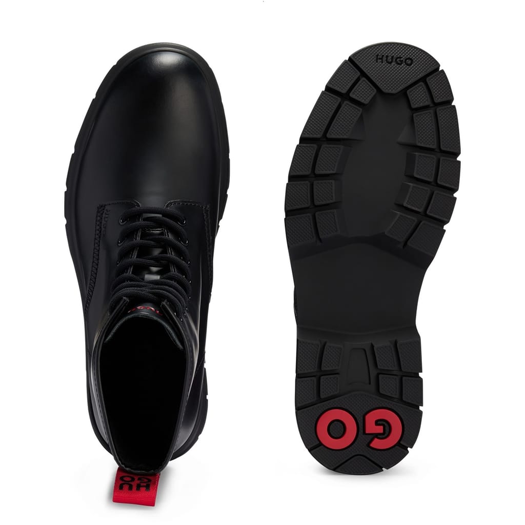 Discover the Hugo brogue boots, a sophisticated addition to your footwear collection. These shoes feature a classic round toe design, offering both style and comfort. Perfect for those seeking a blend of elegance and functionality, these boots are a testament to Hugo's commitment to quality craftsmanship. -