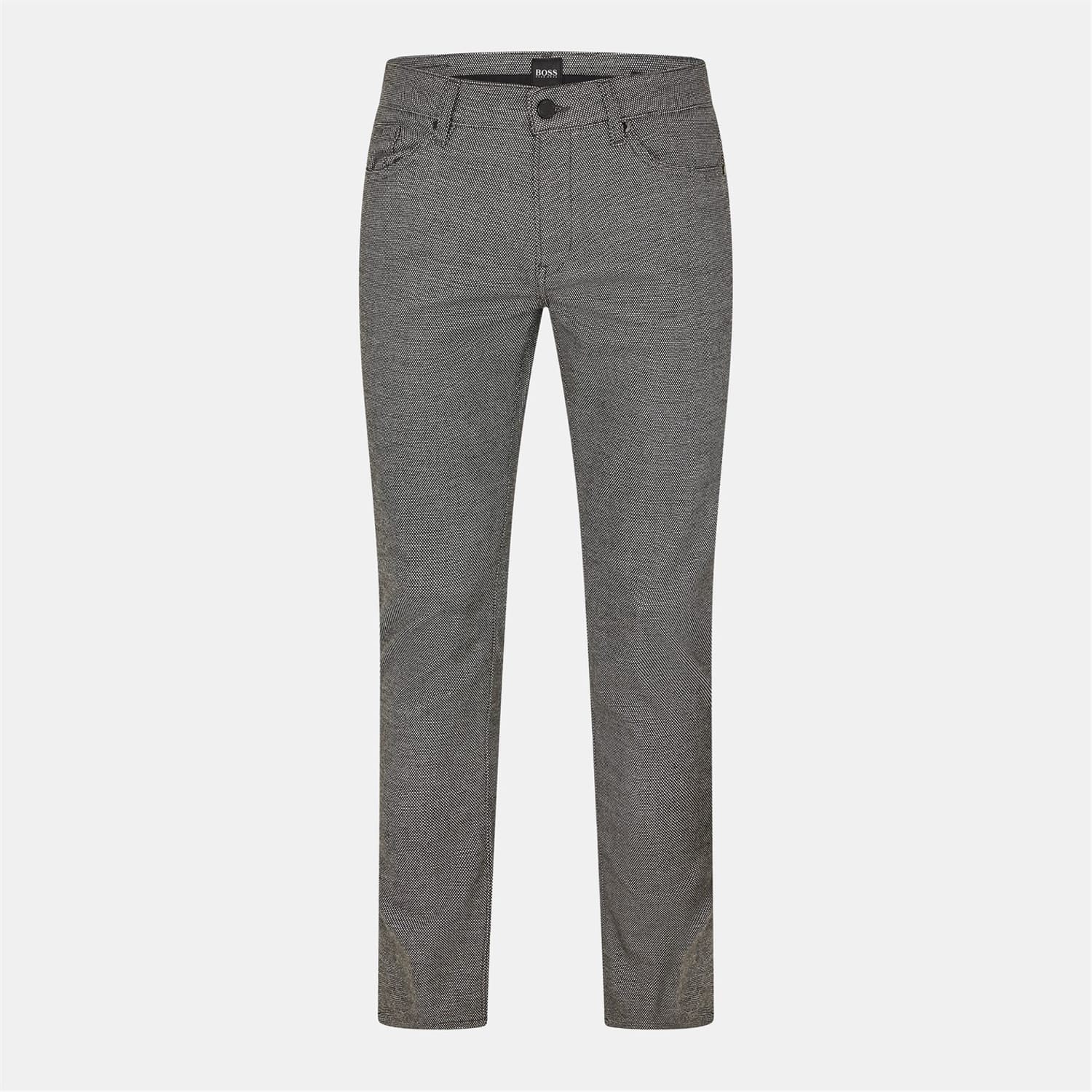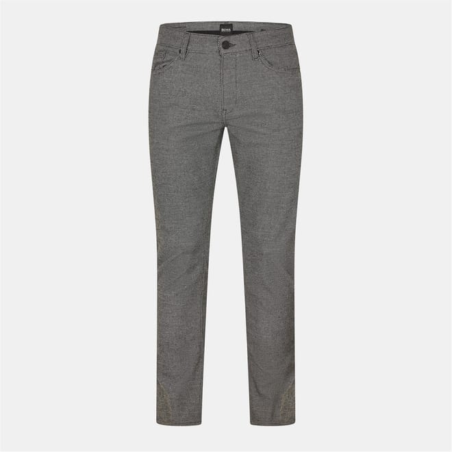 Boss jeans feature a herringbone pattern and a five-pocket design. The slim fit ensures a modern silhouette, while the zip fly and front button closure provide a secure fit. Embellished with rivets and detailed stitching, these jeans include front, back, and coin pockets for practicality and style. -