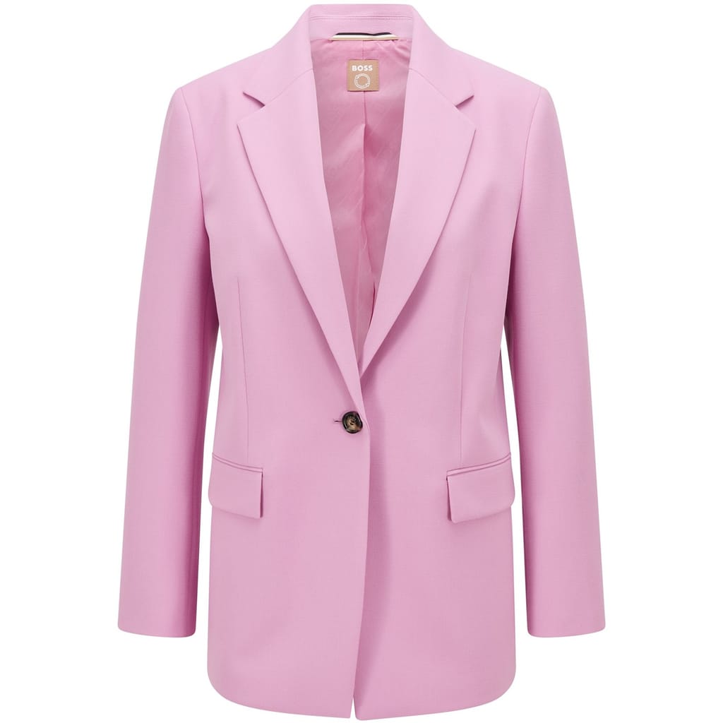 This Boss blazer from the workwear collection is a sophisticated choice for professional settings. Featuring a lapel collar and a button closure, it offers a regular fit with a straight hem. The solid pattern is complemented by a subtle logo embellishment, adding a touch of brand identity to this classic piece. -
