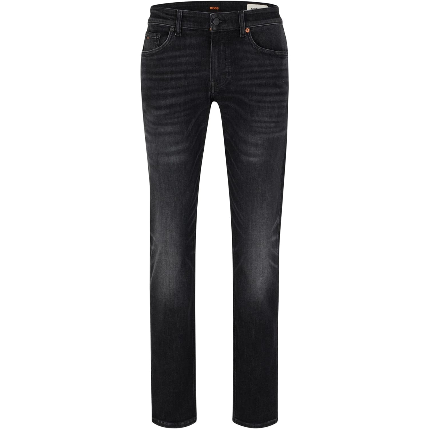 The Boss Delaware jeans feature a straight fit with a classic five-pocket design. Crafted with a washed pattern, these jeans include a zip fly, front button, and belt loops for a secure fit. The embellishments include front, back, and coin pockets, along with detailed stitching, offering both style and functionality. -