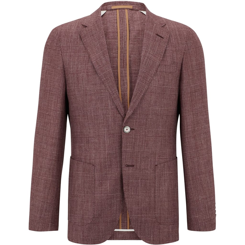 Elevate your professional wardrobe with this Boss blazer, a staple from the workwear collection. Featuring a classic lapel collar and a button closure, this plaid jacket offers a regular fit for a polished appearance. The straight hem adds a touch of sophistication, making it an ideal choice for business settings. -