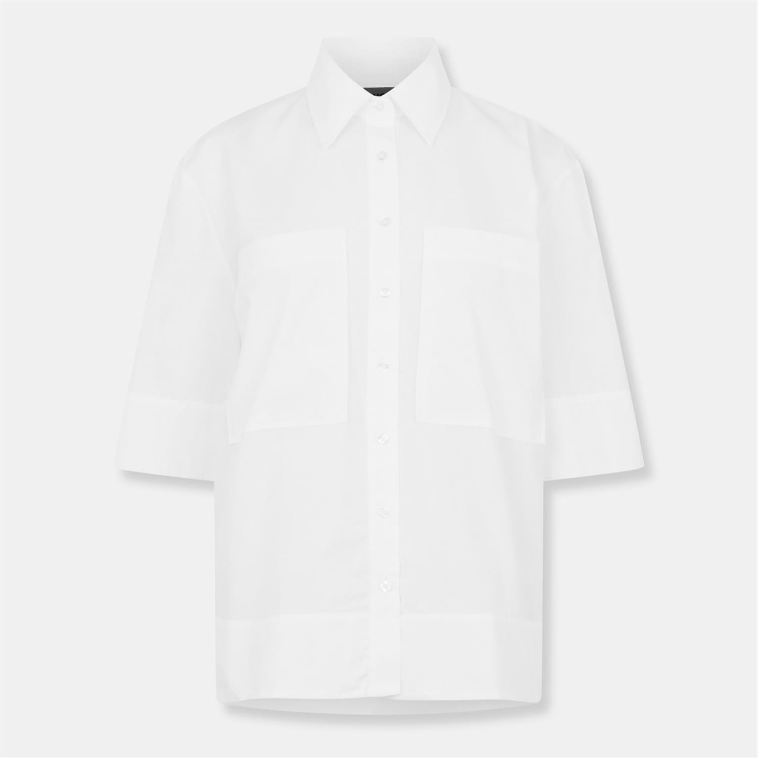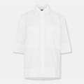 This Hugo top is a casual essential, featuring a relaxed fit and a solid pattern. It comes with a shirt collar and three-quarter sleeves, offering a comfortable yet stylish look. The button closure adds a classic touch, while the pocket embellishment provides a practical element. -